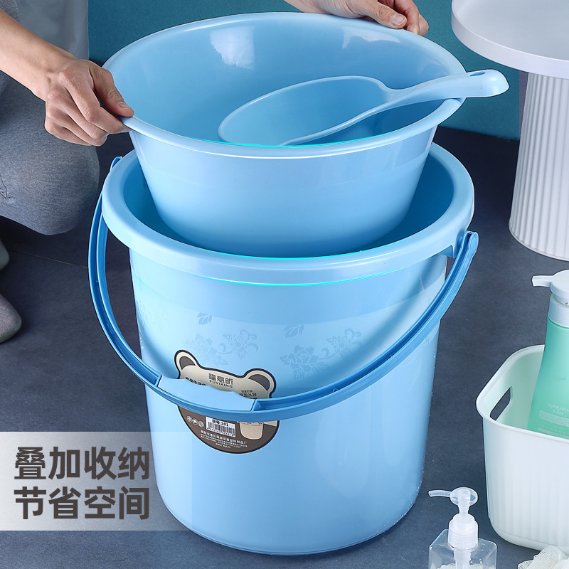 加厚塑料桶水桶家用宿舍手提洗衣桶洗澡桶圆脸盆套装储水桶特大号