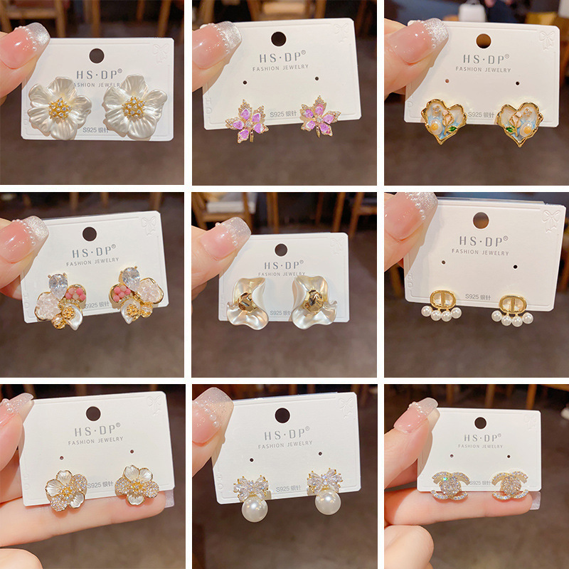 シンプルなクラシックピアスは100種類のファッション925銀針イヤリングジルコン真珠幾何イヤリング卸売りを推奨しています