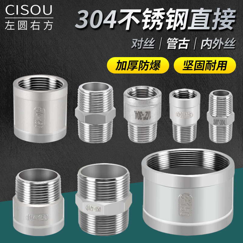 304ステンレス双外糸内糸直接内外糸継手ストレートバンド1分2分3分4分6分1インチ