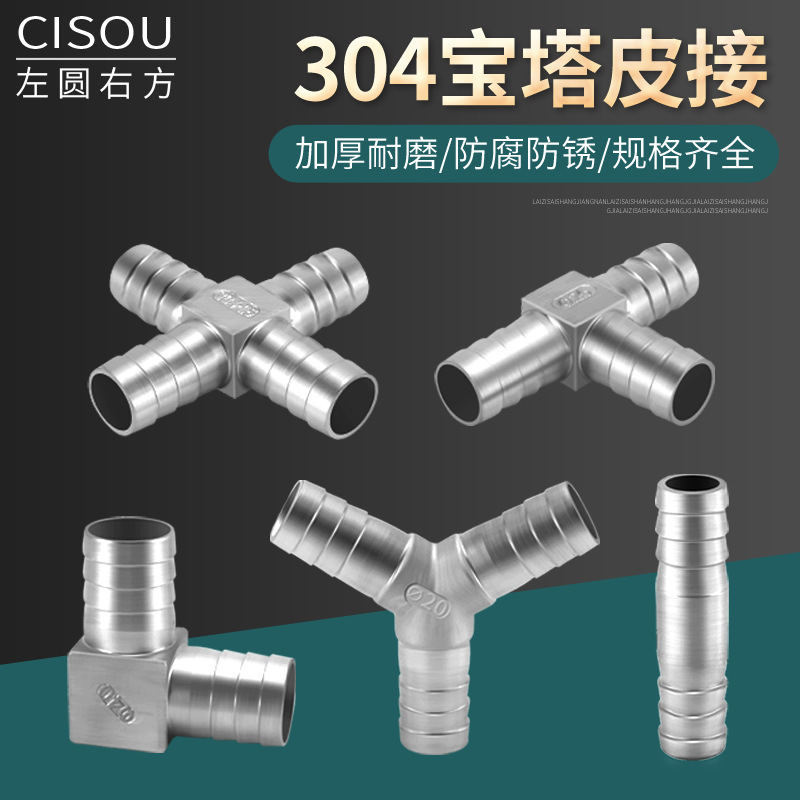 304ステンレス宝塔継手ホース気管水管皮挿し継手エルボ直通三方四通グリーンヘッド