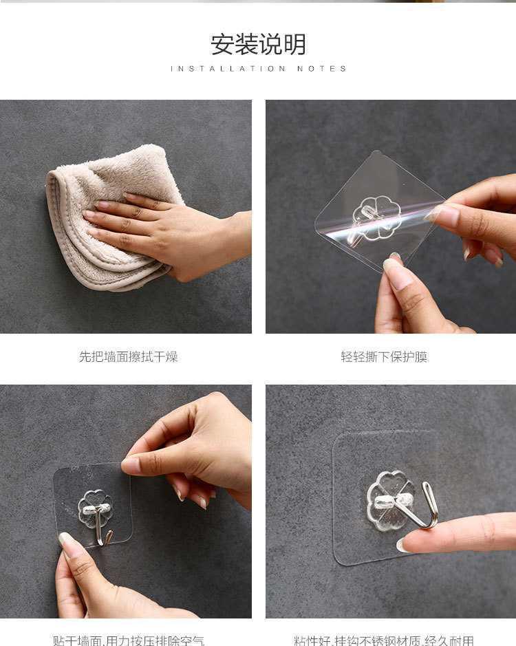 単一の透明フックは強力で、傷のない壁掛け粘着テープを引っ張ります。