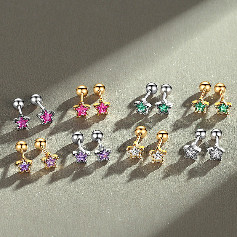 カラー五角星耳骨釘s925銀ねじボールイヤリングにドリルのピアスを入れて寝ています。