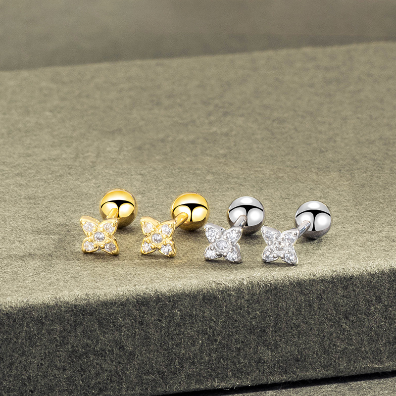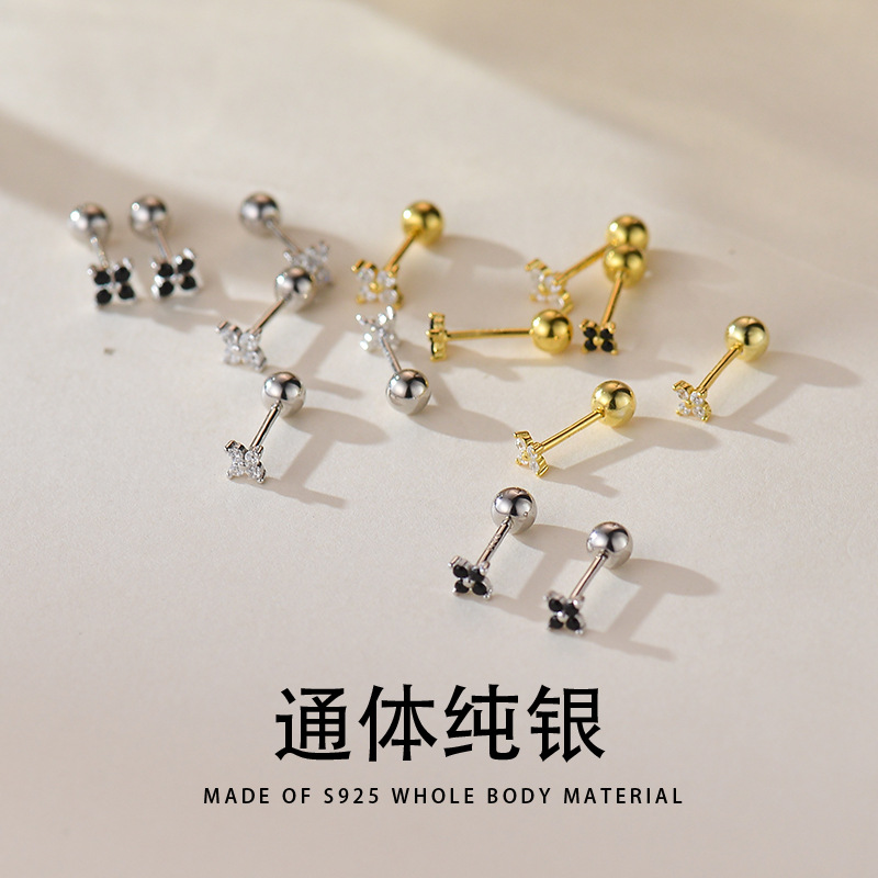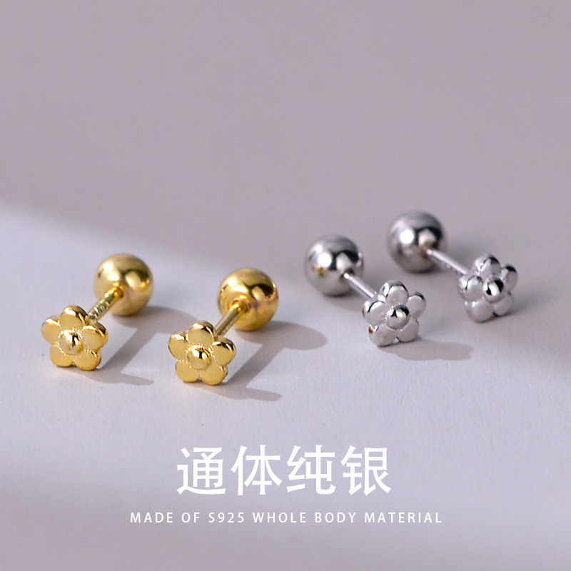 S999純銀ネジ締めピアス花小耳骨釘女高級感小insf風イヤリング耳飾り