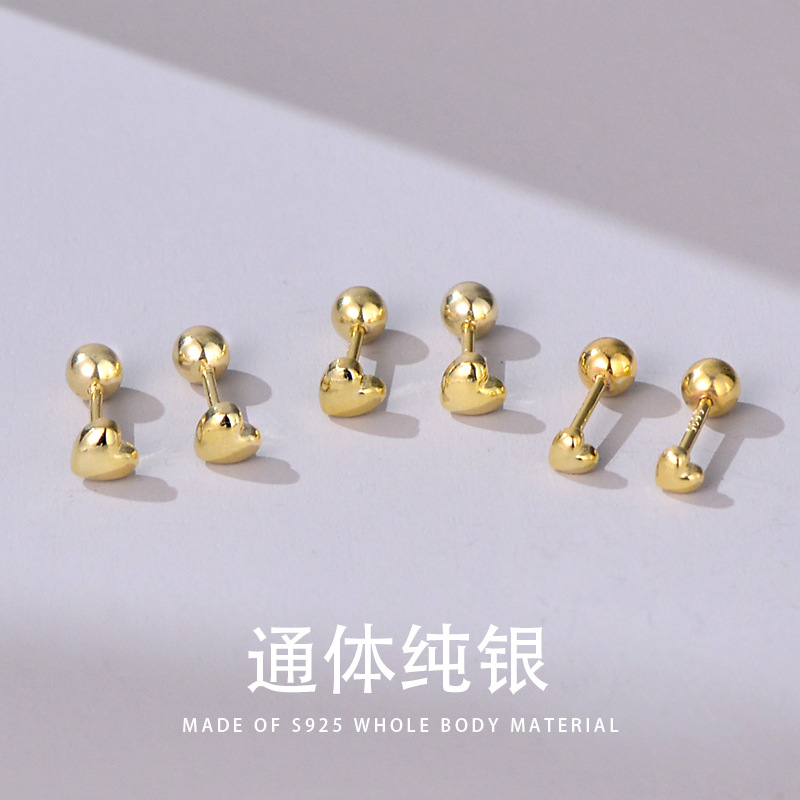 S925純銀愛ピアス女性ねじ金ねじ日韓シンプル気質スパイラルビーズ小清新新商品潮