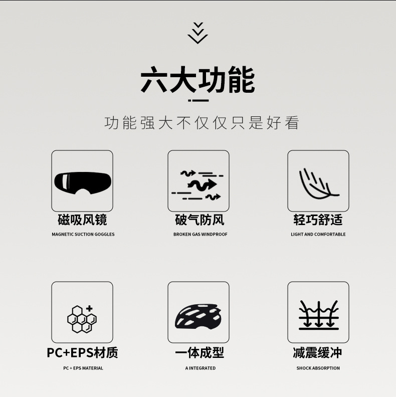 ■ 结构(CONSTRUCTION):外部IN-MOLD(一体成型)抗撞击PC ,内部EPS一体成型吸收撞击