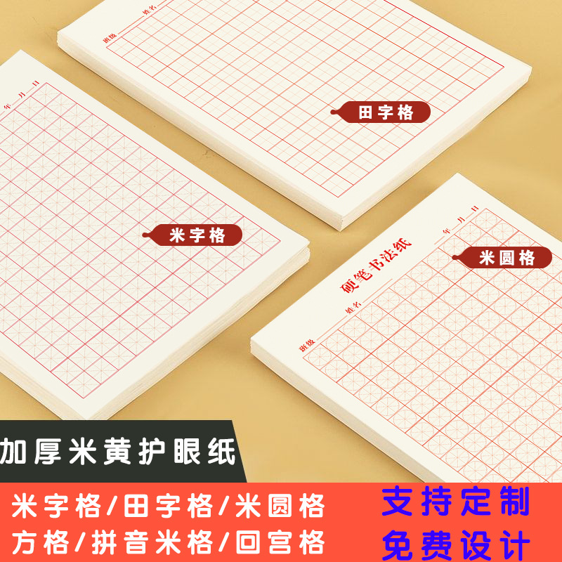 厚い米字格硬筆書道作品紙学生ピンイン田字格方眼回宮格米円格練習紙