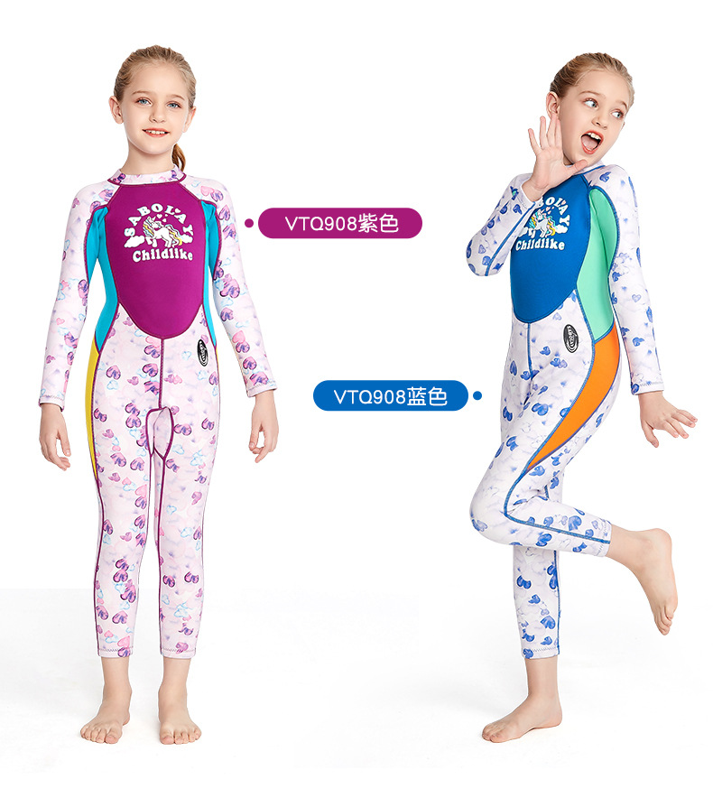 秋冬子供2MM厚手ワンピース女の子長袖水着日焼け止めカートゥーンサーフィン子供水着ウェットスーツ