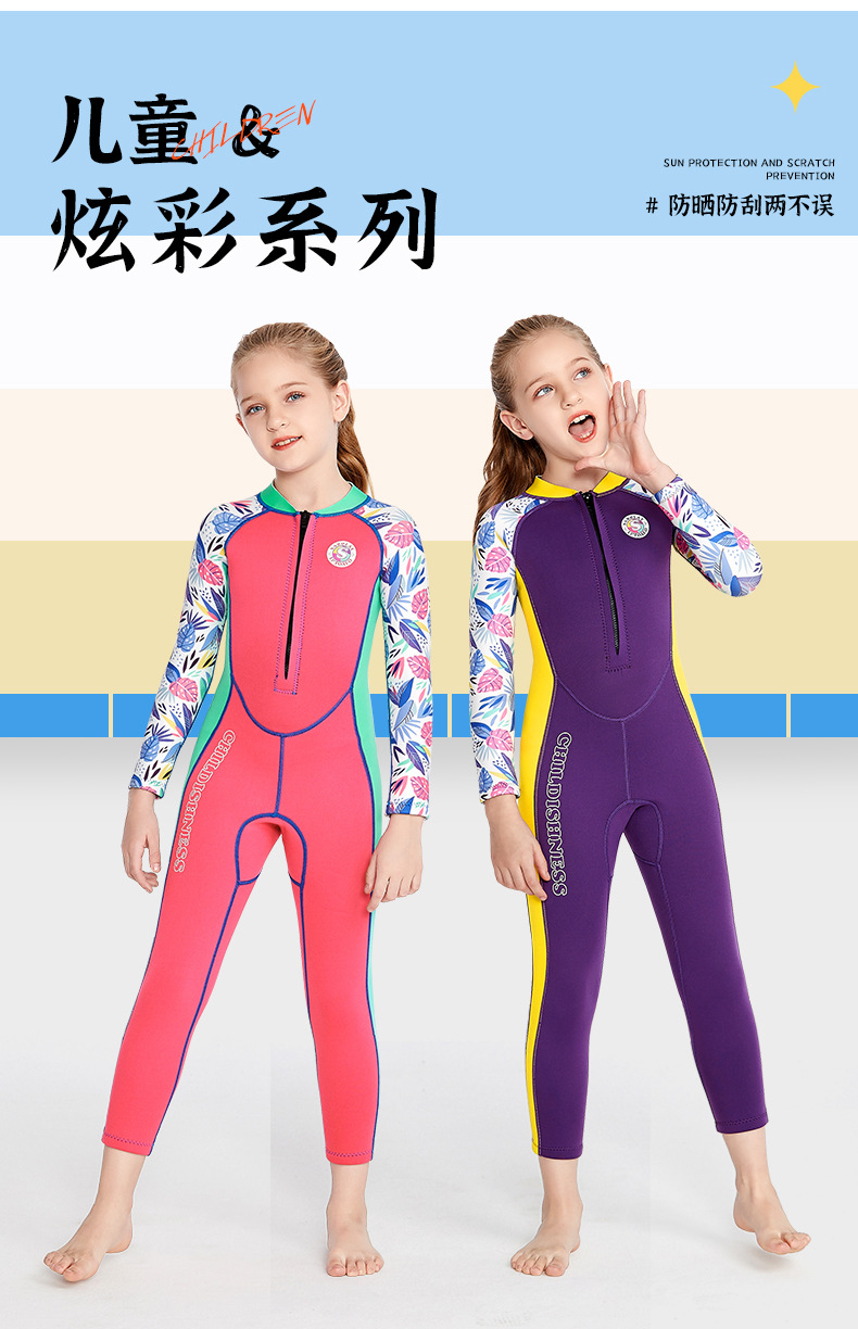 新しい子供用水着一式、ワンピース子供用水泳長袖秋冬保温スーツ、サーフィン用2MMダイビングスーツ