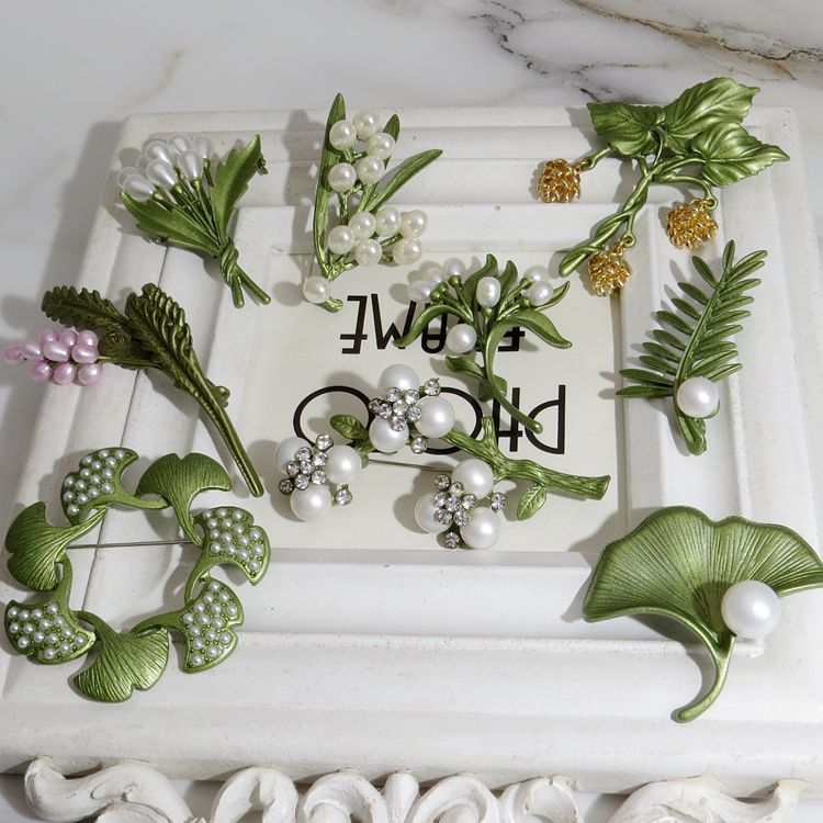 日韓のヴィンテージのアクセサリーの速売通の女性の緑色の漆のシンプルな大気の鼠の尾の草のブローチの胸の花のスカーフのボタン