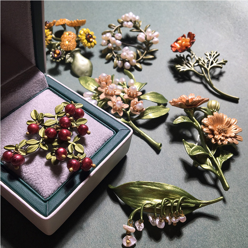 日韓アクセサリー速売通ネットレッド輸入塗装森系バラ蕾小清新女性デザインブローチ