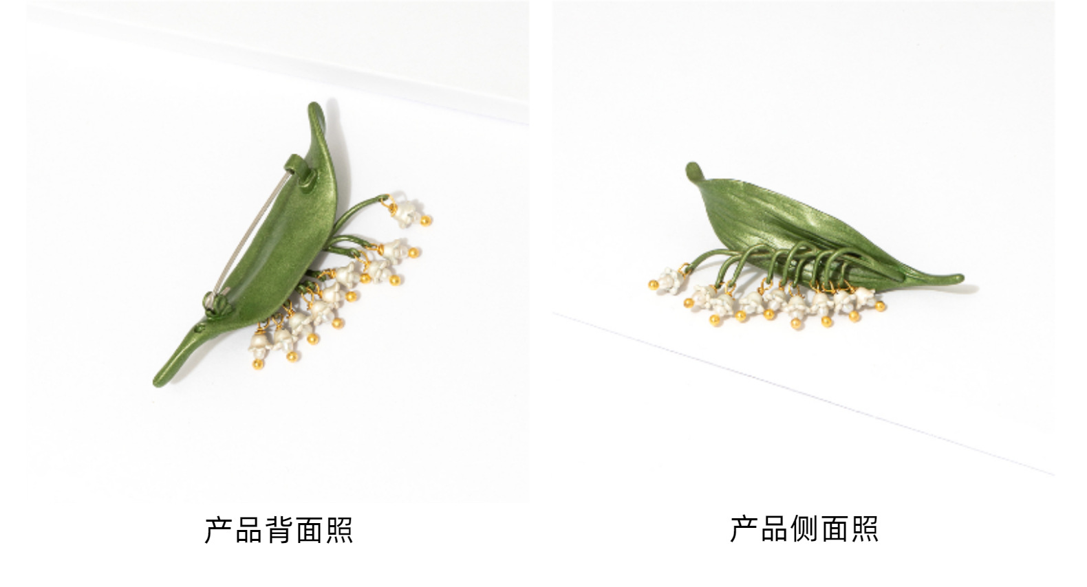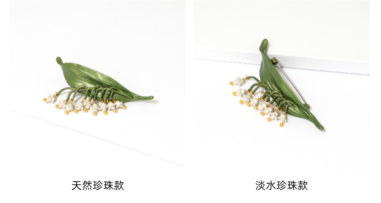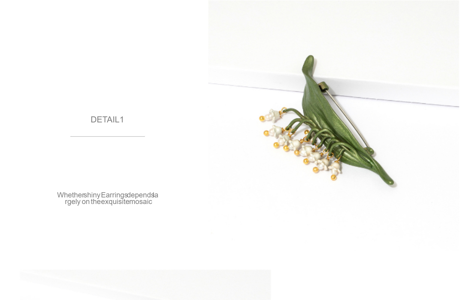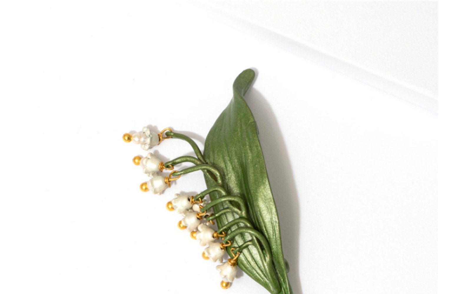 欧米の谷の百合のすずらんの馬の蹄の蓮の真珠の緑色の骨董品の漆の女性の金の防走光の復古のブローチの装飾品