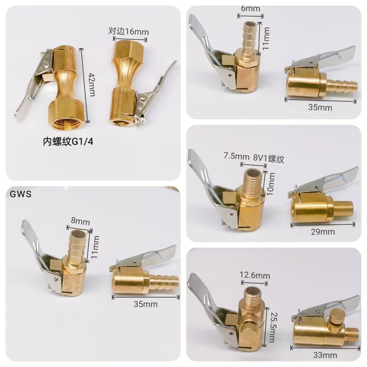 轮胎充气夹头铜加强材料快速锁紧充气内1/4螺纹规格带密封垫快充
