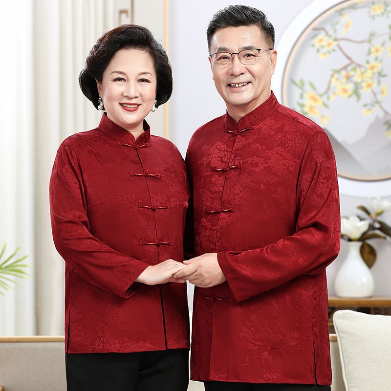 メーカー直販長袖唐装男女中国風両親披露宴装高齢者服誕生日過寿父母