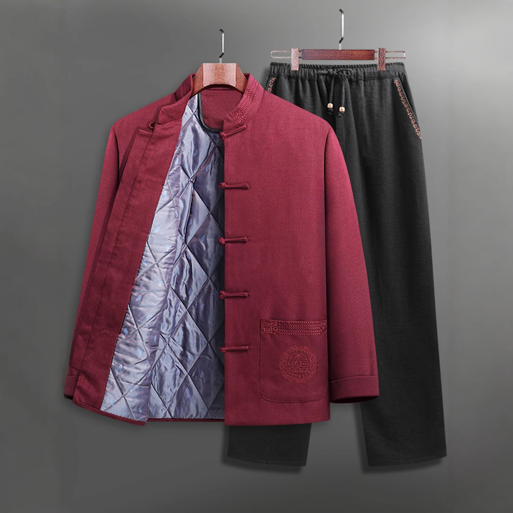 中高年のお父さんは冬の綿服の上着を厚くして、唐装男は誕生日の老人服のおじいさんは中国風を装います。