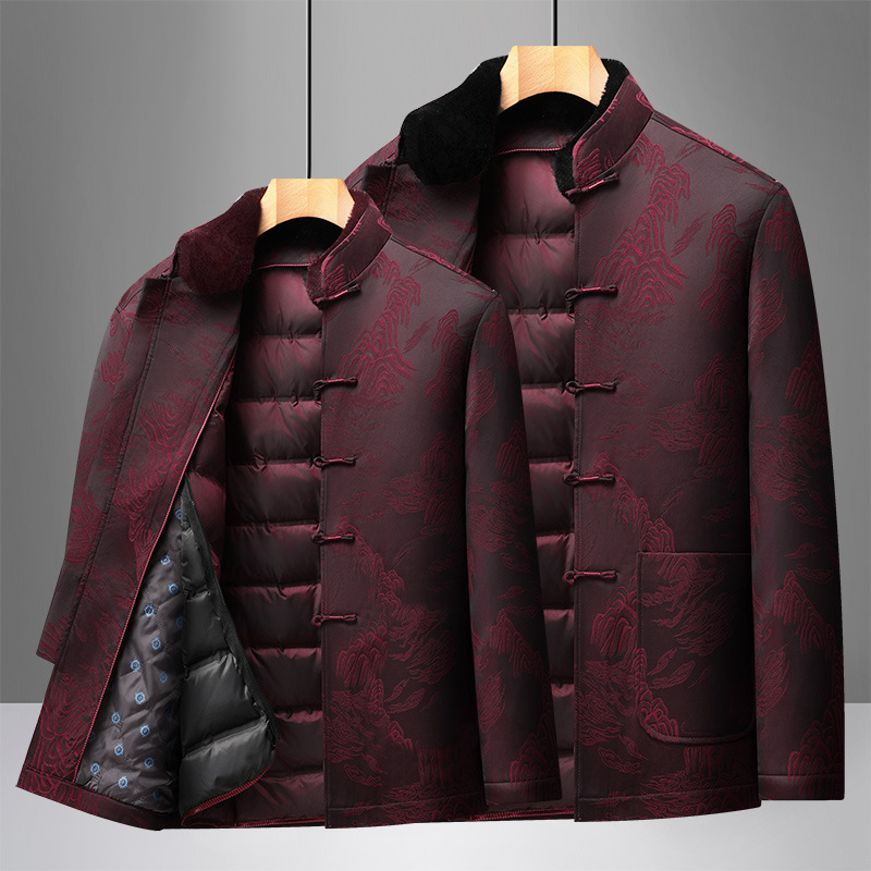 中高年中国風唐装男性冬装父祖父服加毛厚手綿入れコート大サイズ