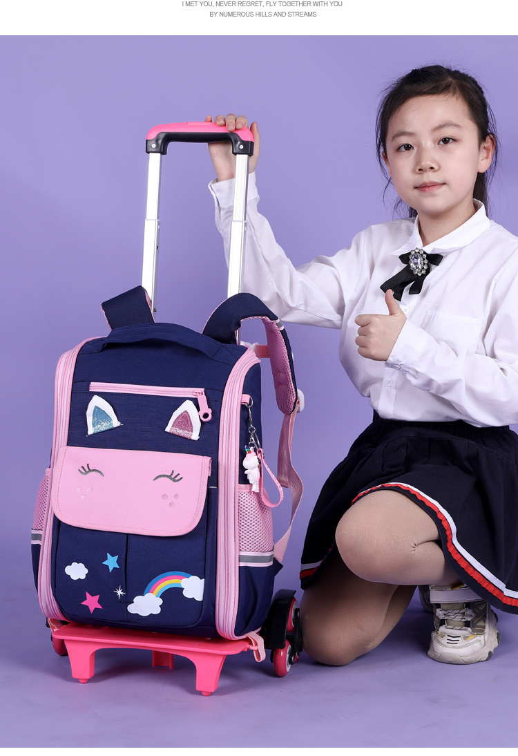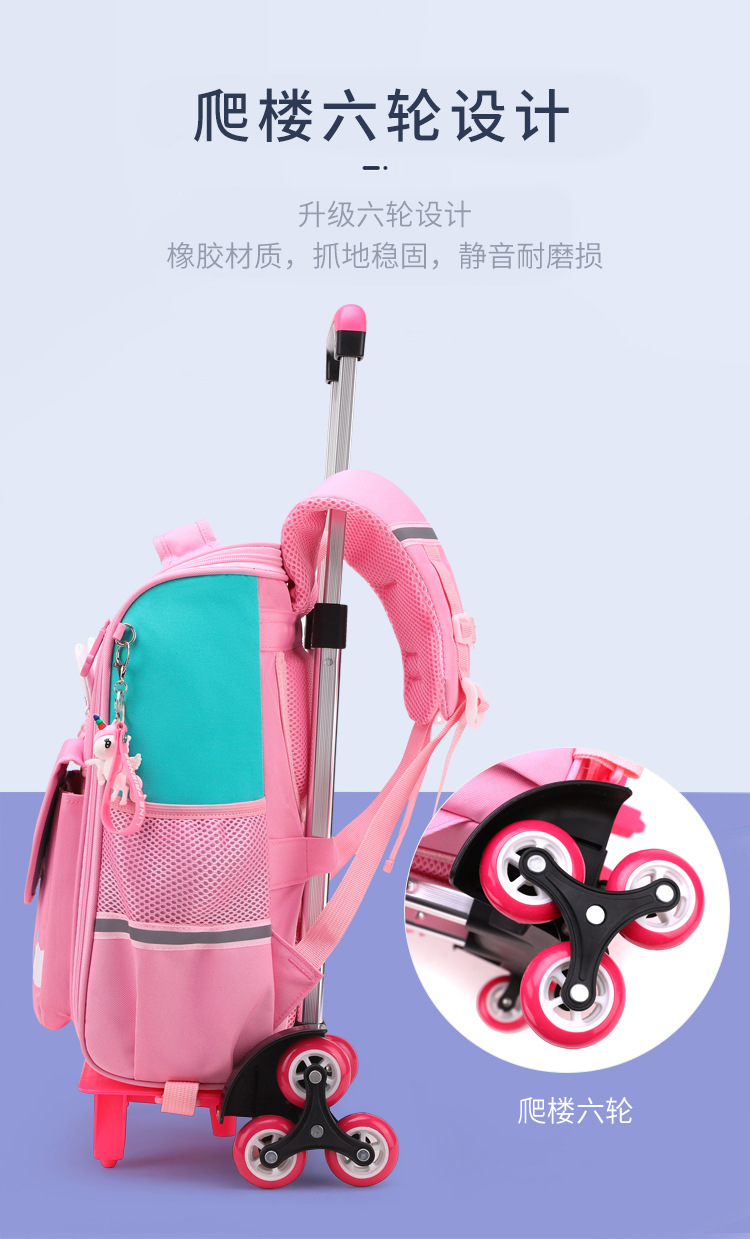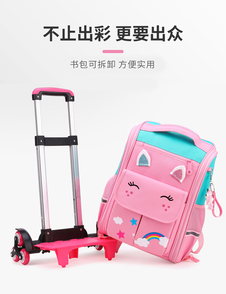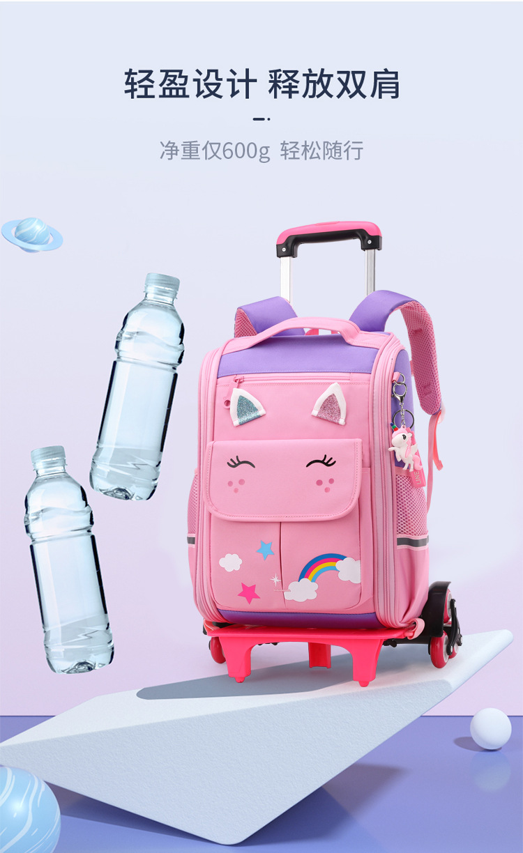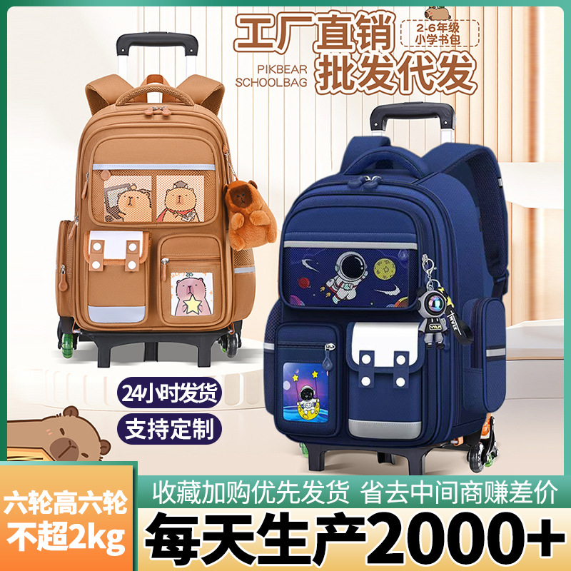 自然鱼跨境小学生拉杆书包三到六年级大容量中学生轻便爬楼梯六轮