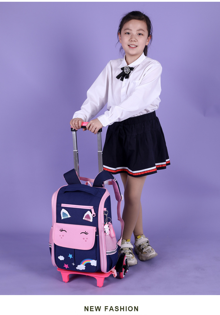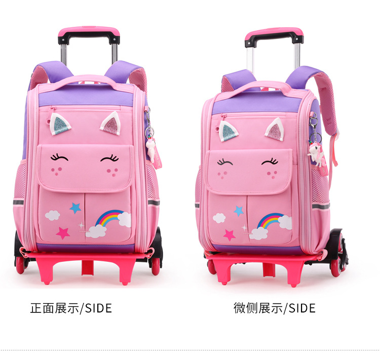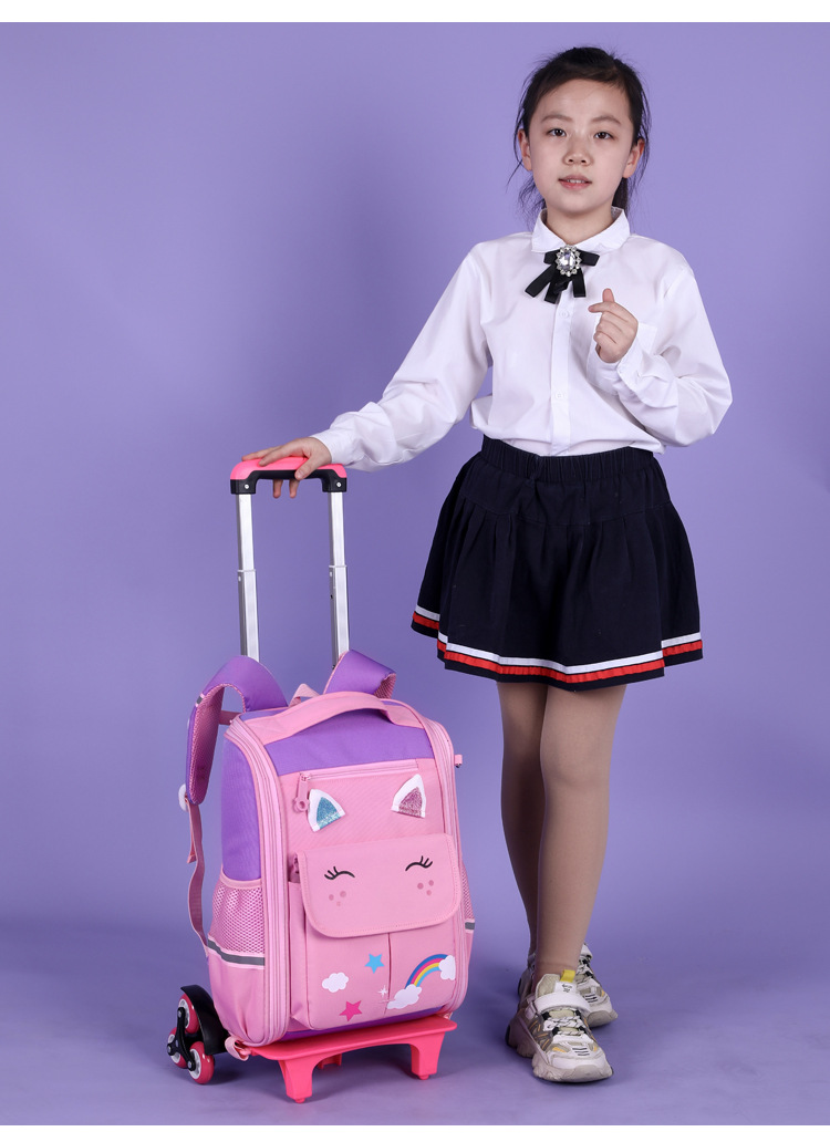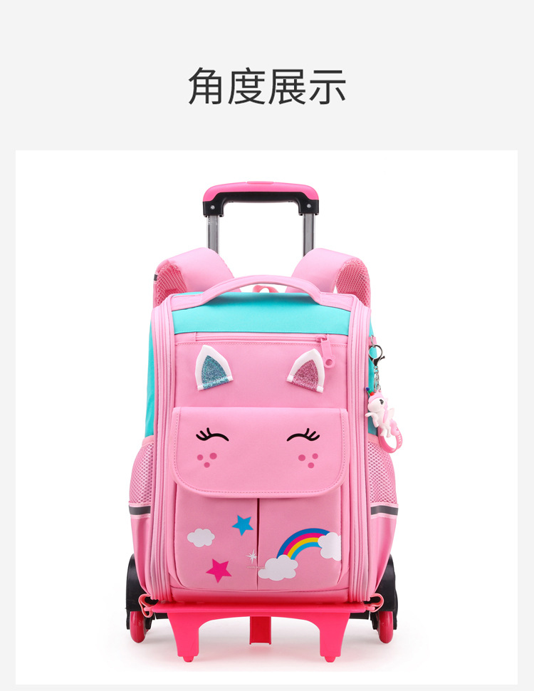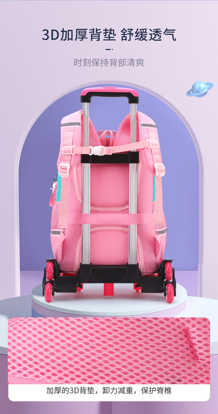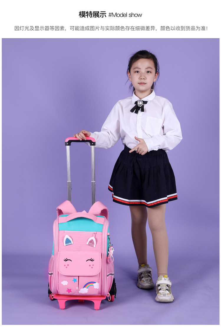 自然鱼跨境小学生拉杆书包三到六年级大容量中学生轻便爬楼梯六轮