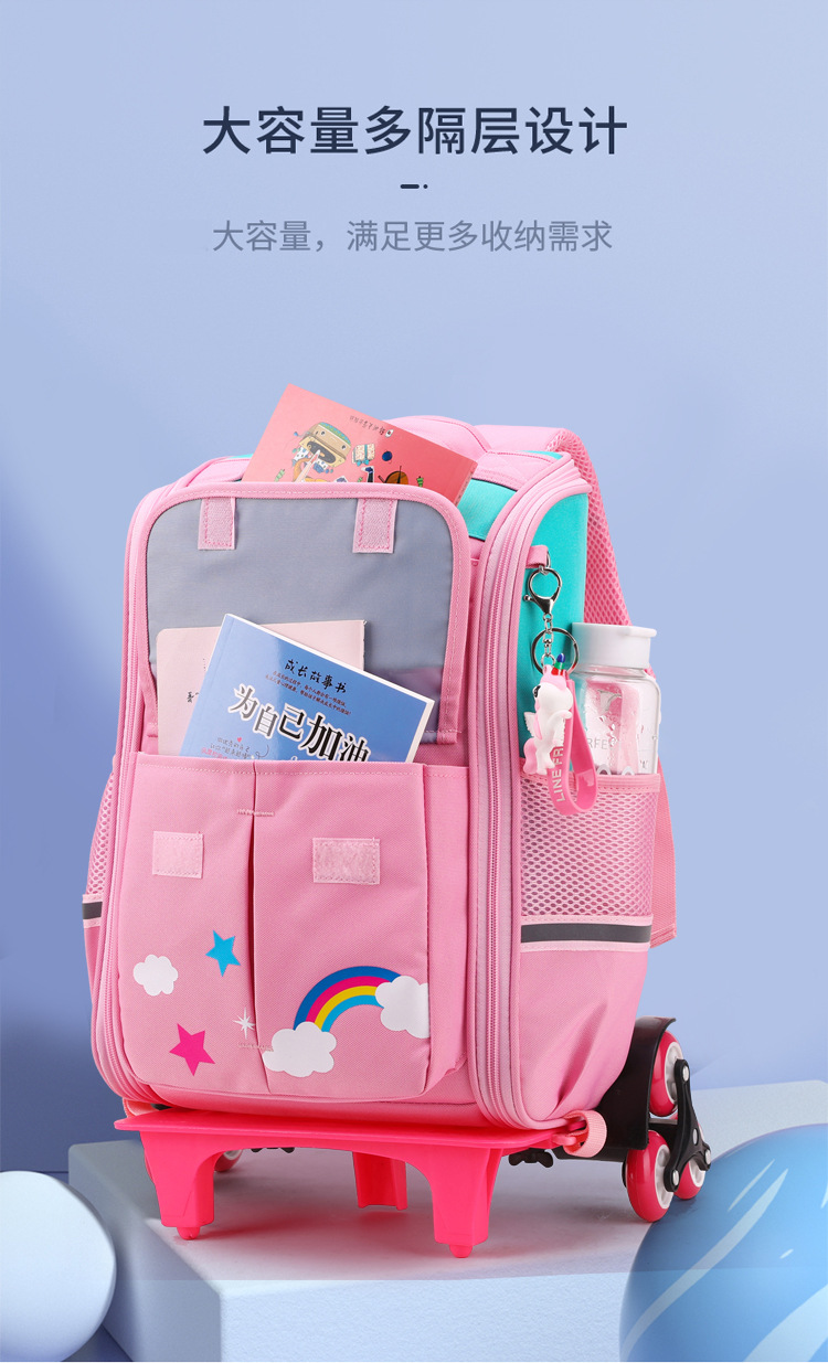 子供のレバーのカバンの小学生の女の子の六輪は2-6年生の5大容量の両用防水のマイナス12を登ることができます。