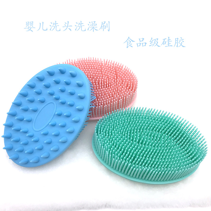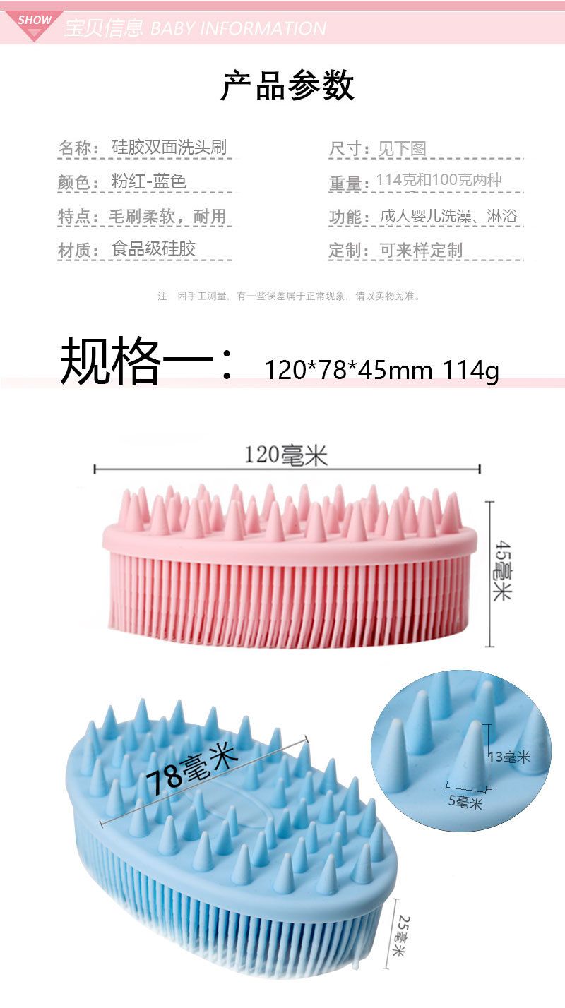 新しいクロスボーダーバスシャンプーソフトブラシベビー触覚トレーニングマッサージベビー両面シリコーンバスブラシ
