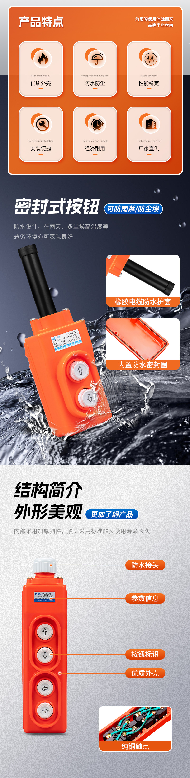 CLD防水控制起重机天车按钮开关电动葫芦操作手柄行车控制开关