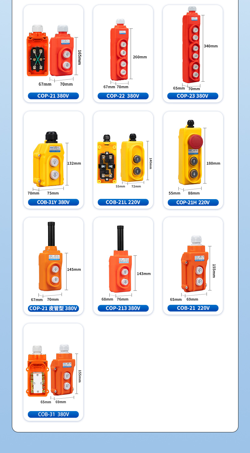 COB-21H クレーン単相上下スイッチ、非常停止加力ボタン付き電動ホイスト、方正電機部品