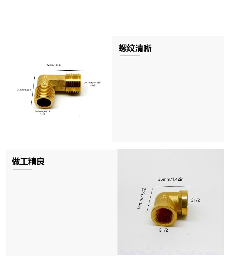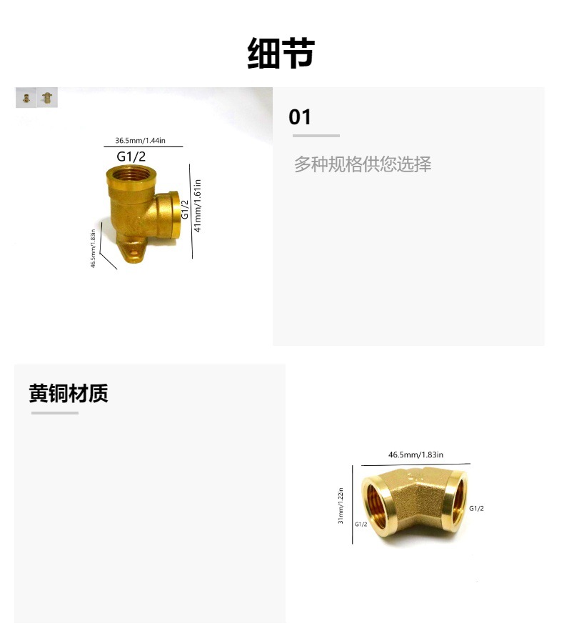 黄铜4分6分内外牙弯头1/2带座弯1寸/1.2寸/1.5寸/2寸水管接头配件