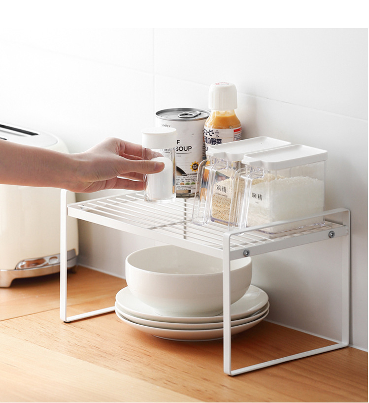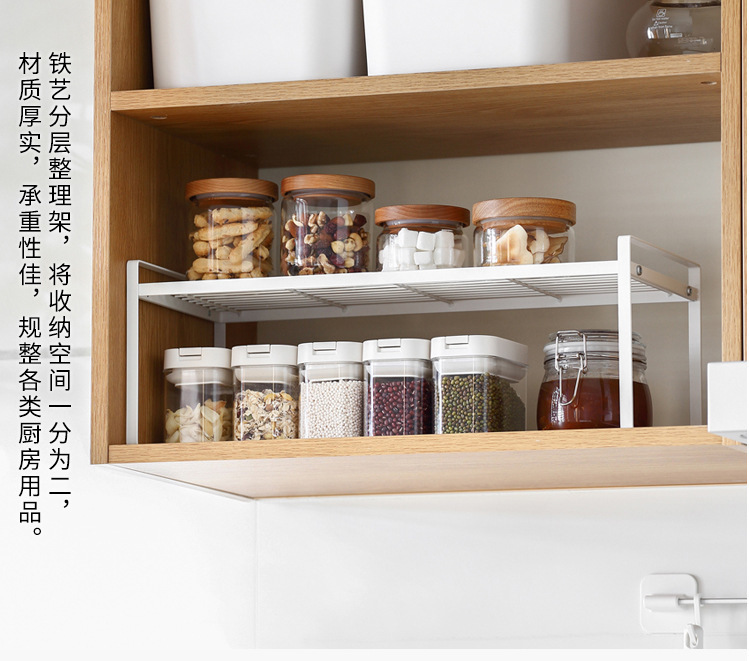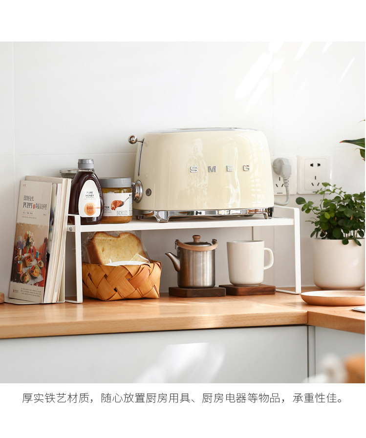 家庭用キッチンの電子レンジ棚には、床に落ちた棚のスープ鍋調味料整理棚の戸棚の棚を重ねることができる
