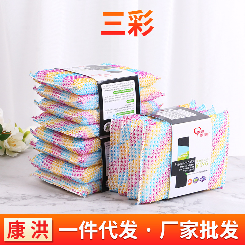 キッチンクリーニング百洁布4枚入家庭用三彩厚手キッチンクリーニング用品ブラシ