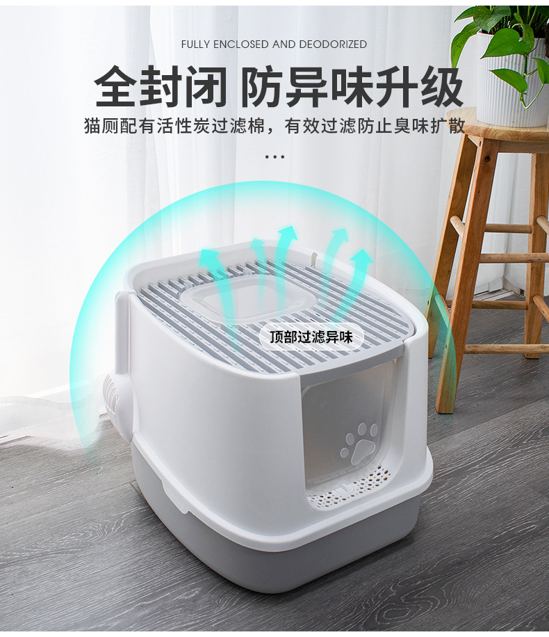 特大トップエントリー猫トイレ飛沫防止完全密閉猫トイレ大型消臭猫トイレクロスボーダー卸売