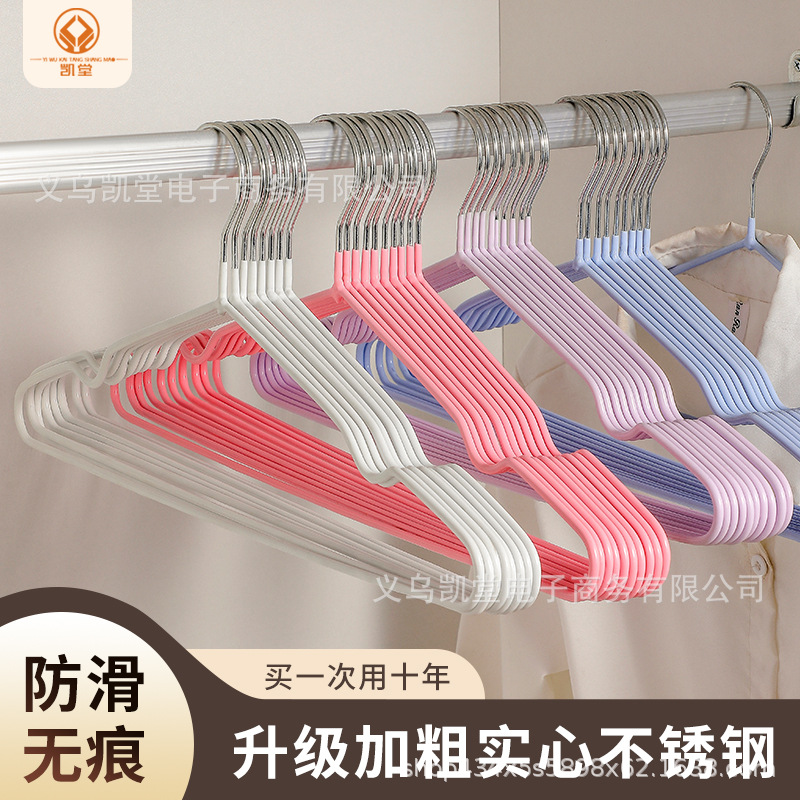 義烏凱堂の成人のハンガーの新型の浸塑のハンガーの金属の滑り止めの無痕のハンガーの服はハンガーの卸売りを掛けます。