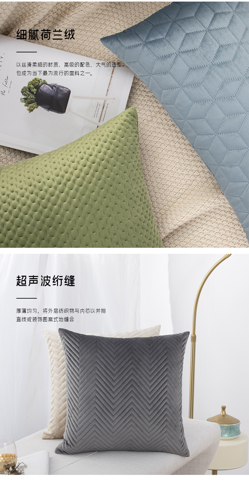 現代的なシンプルで軽い贅沢な幾何学キルティング枕カバーのサンプルルームのソファは枕の寝室のベッドのクッションの腰枕の卸売りに寄りかかっています。