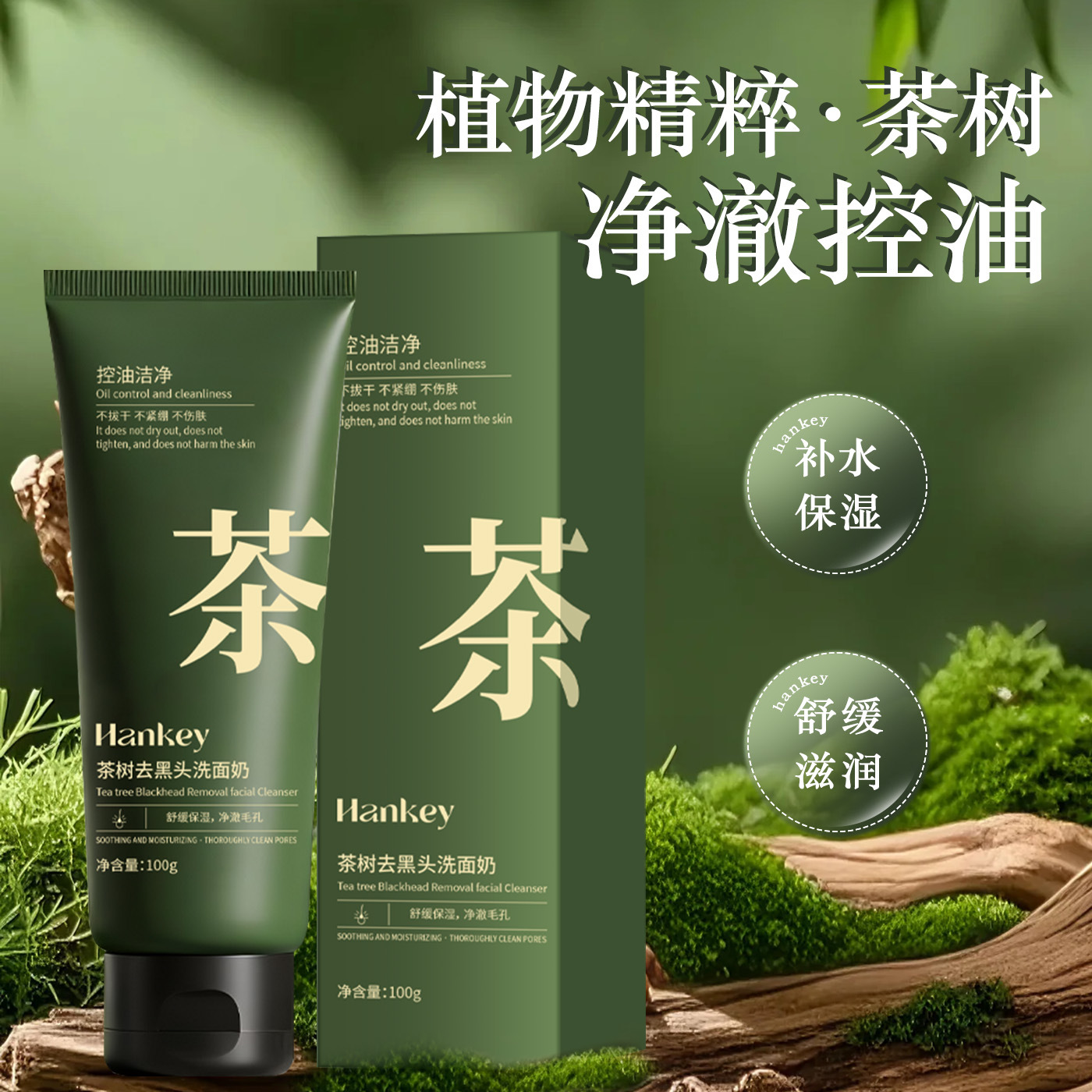 韩纪茶树去黑头洗面奶100g温和保湿去黑头粉刺闭口洁面乳厂家批发