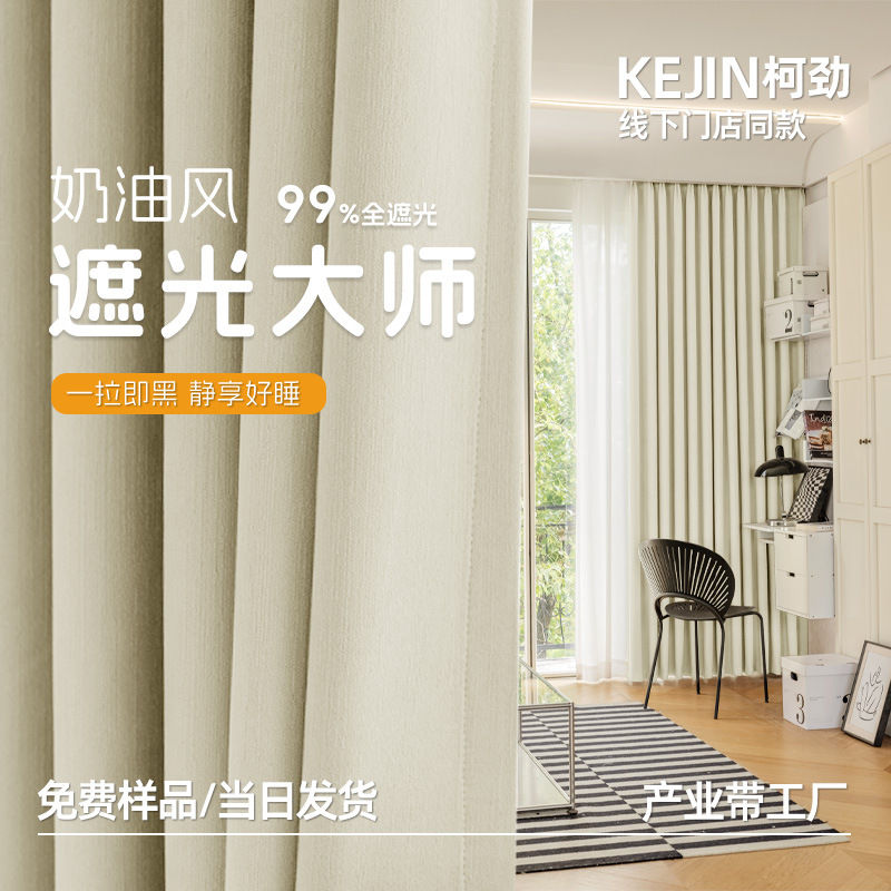 雪尼尔窗帘遮光大师奶油风高遮光绍兴简约窗帘柯桥成品窗帘批发帘
