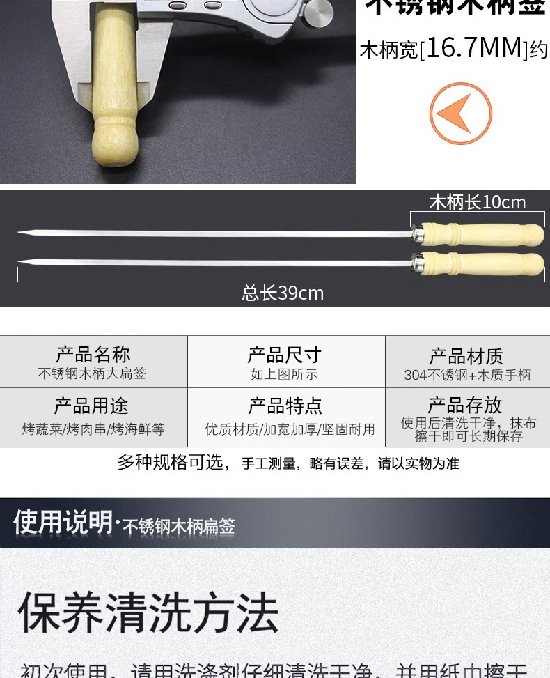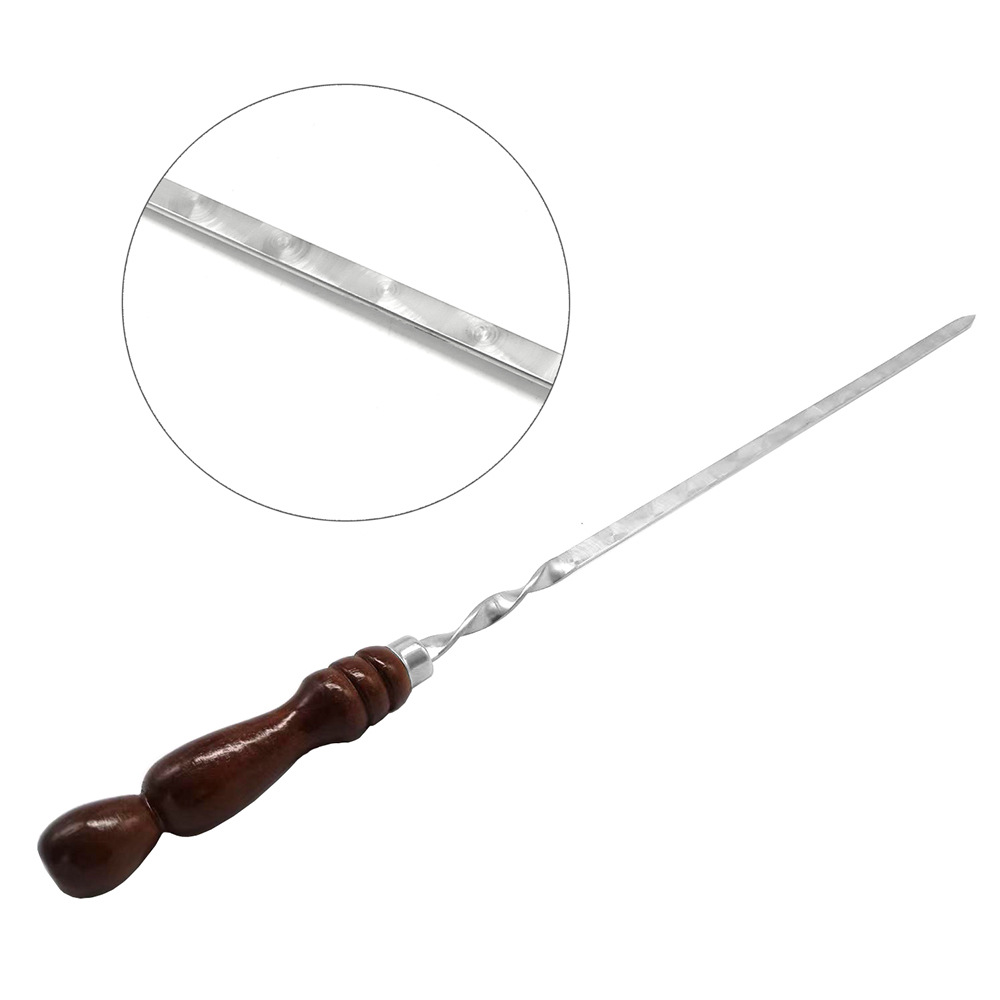卸売ステンレス鋼バーベキューピック 304 木製ハンドルバーベキュー針肥厚バーベキューピックフラットピックラム串バーベキューピック