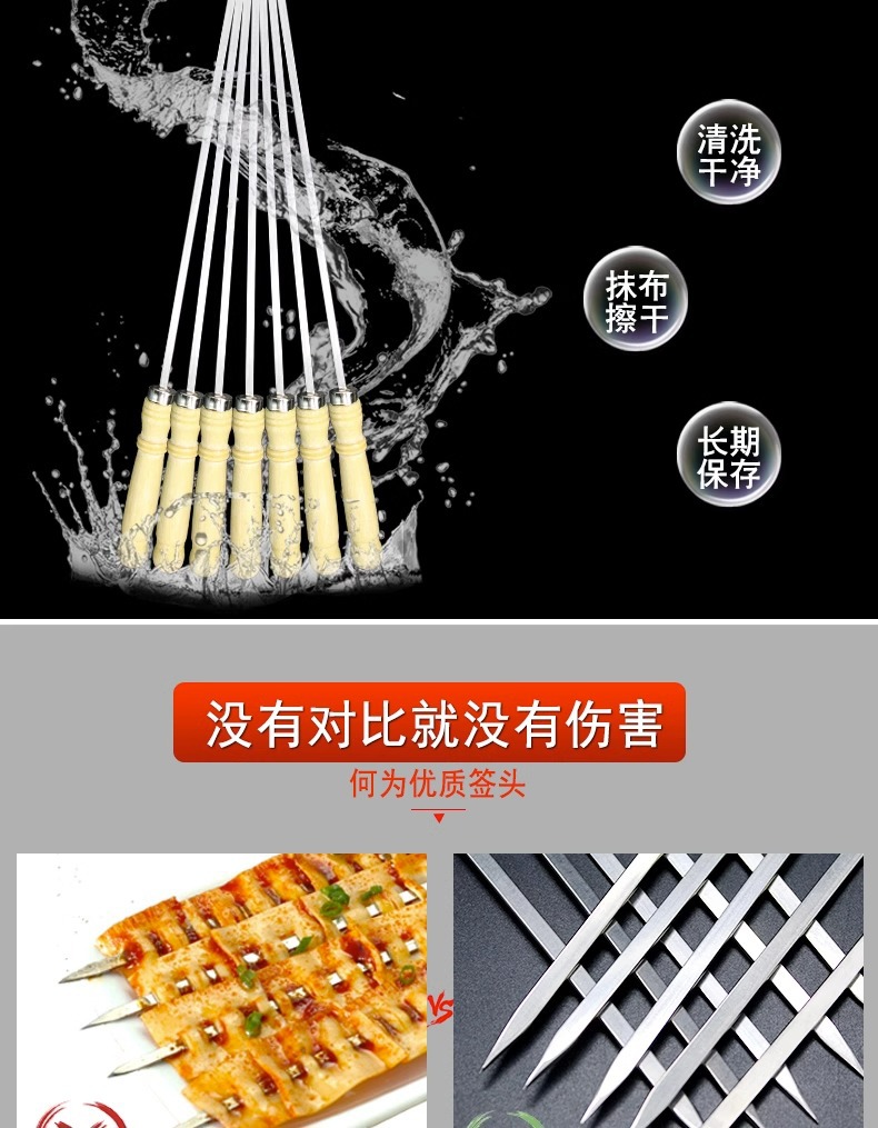 ステンレス製バーベキューサイン商用家庭用バーベキュー針鉄サイン厚い羊肉串焼肉サイン焼き鉄串部品