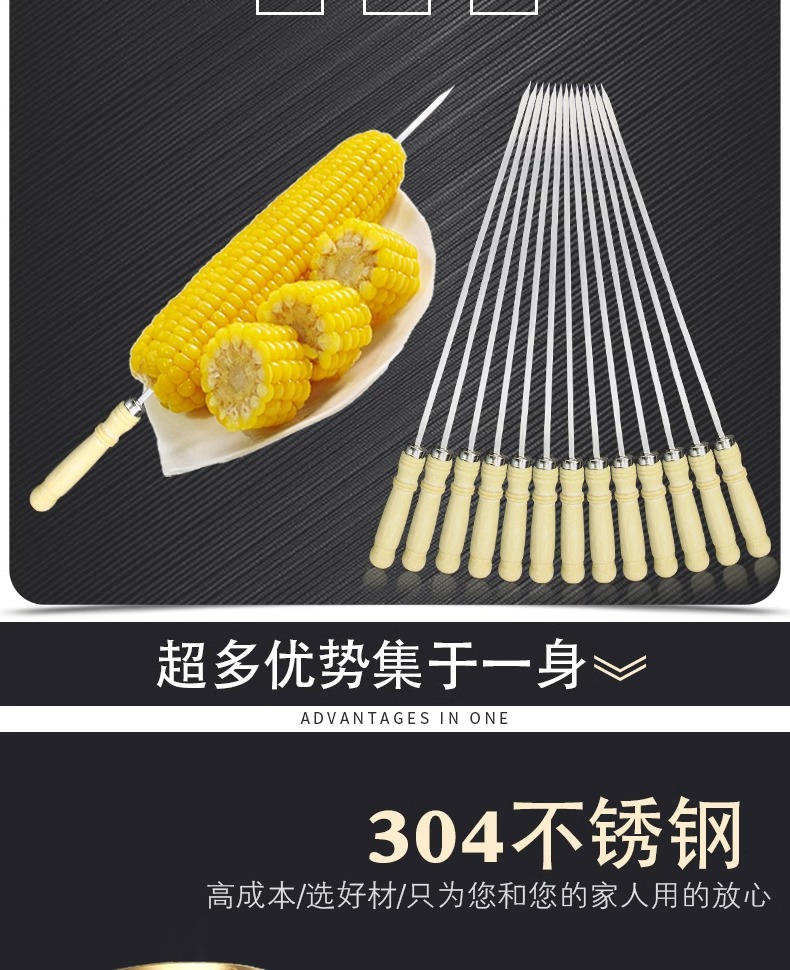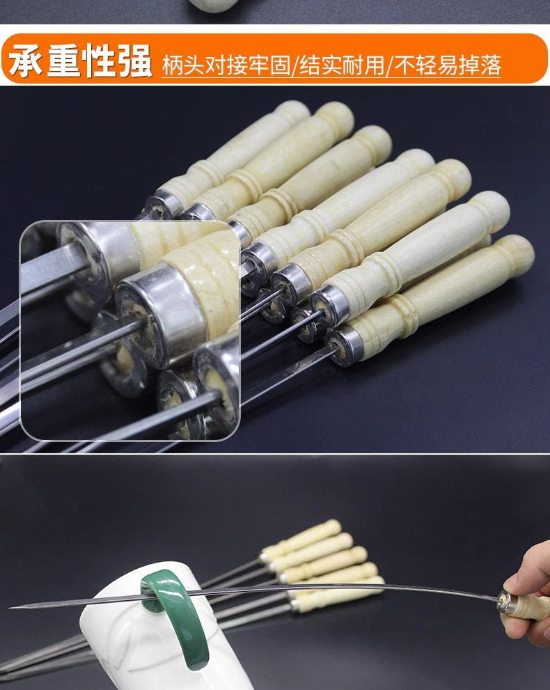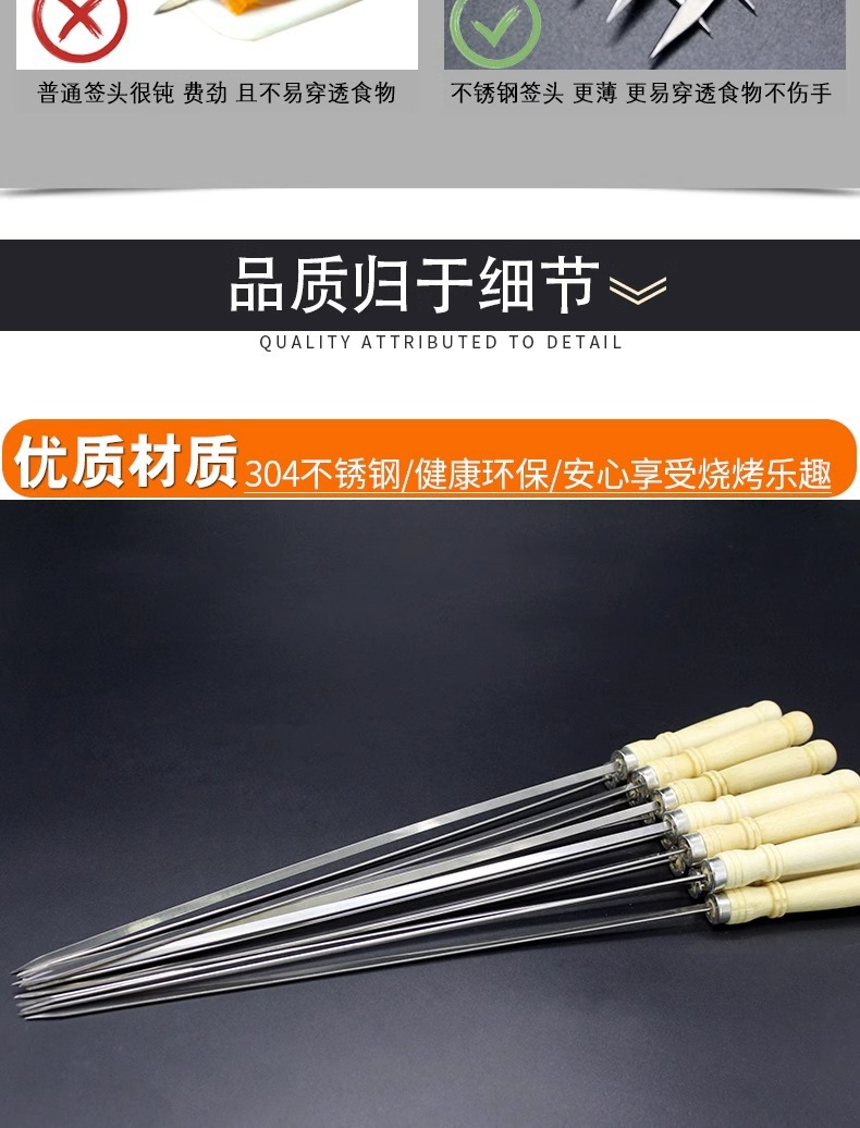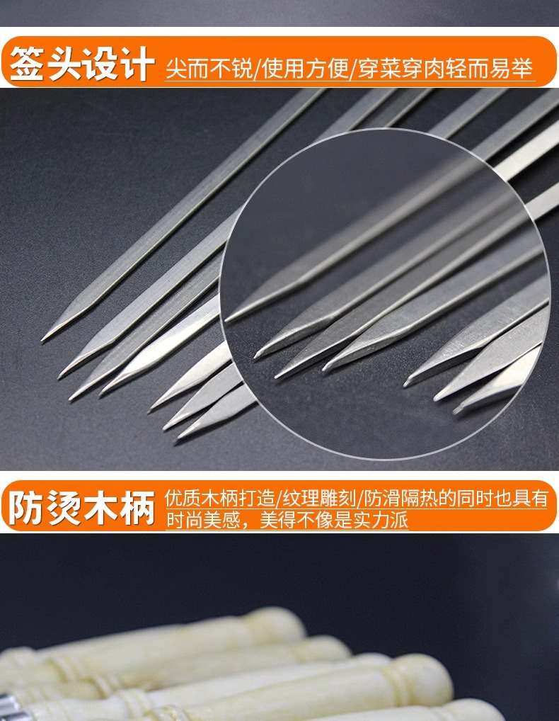 バーベキューサイン卸売りステンレス焼きサイン木柄サイン焼き針焼き肉串平棒焼き工具は独立してセットされている