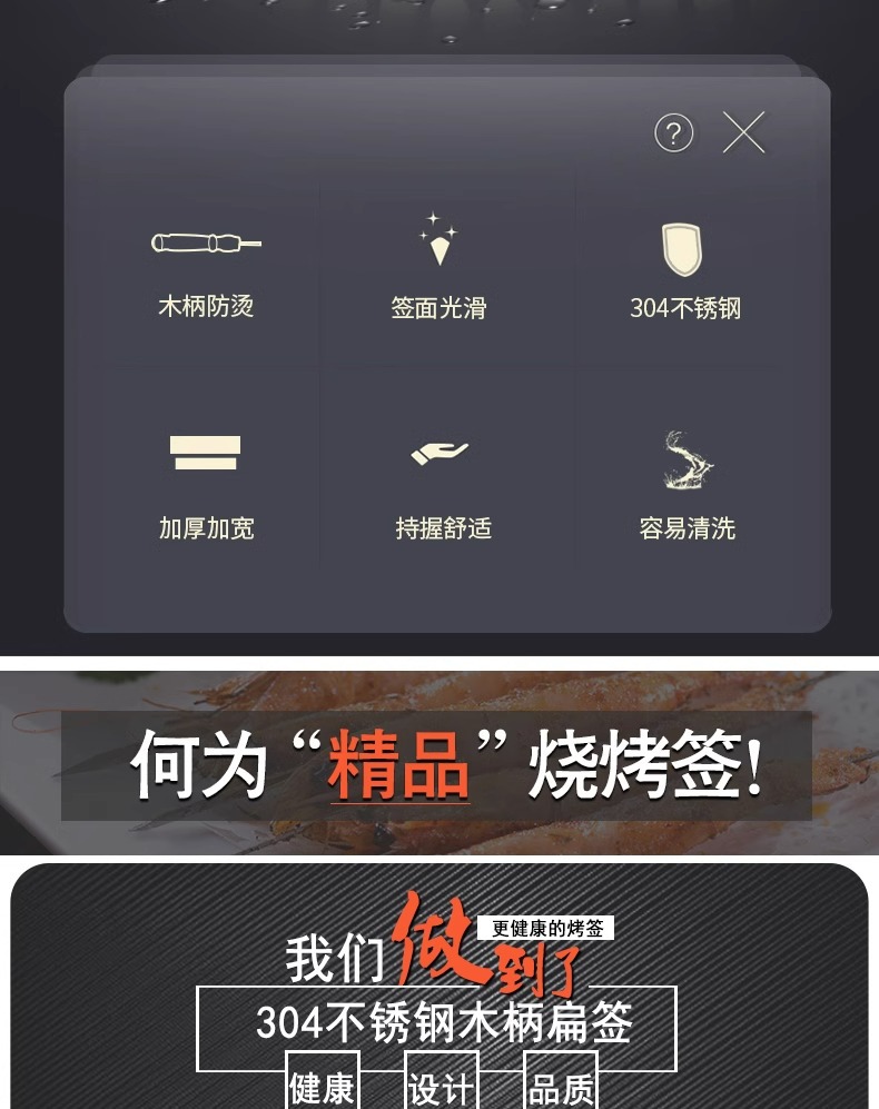 不锈钢烧烤签子扁签户外羊肉串烤肉钢签铁签工具全套用品烧烤针