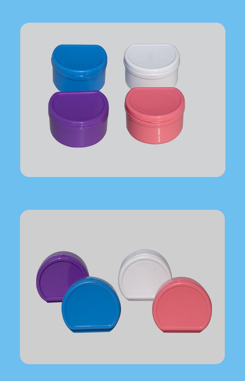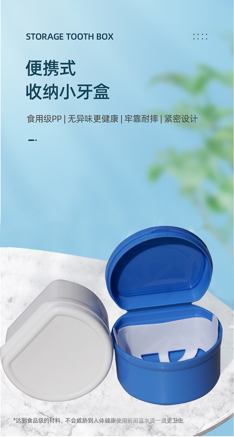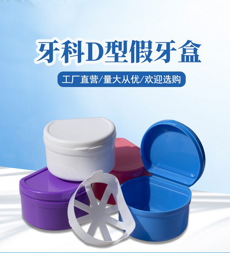 跨境D形泡假牙清洁盒带沥水可logo印刷假牙盒子便携浸泡盒义齿盒