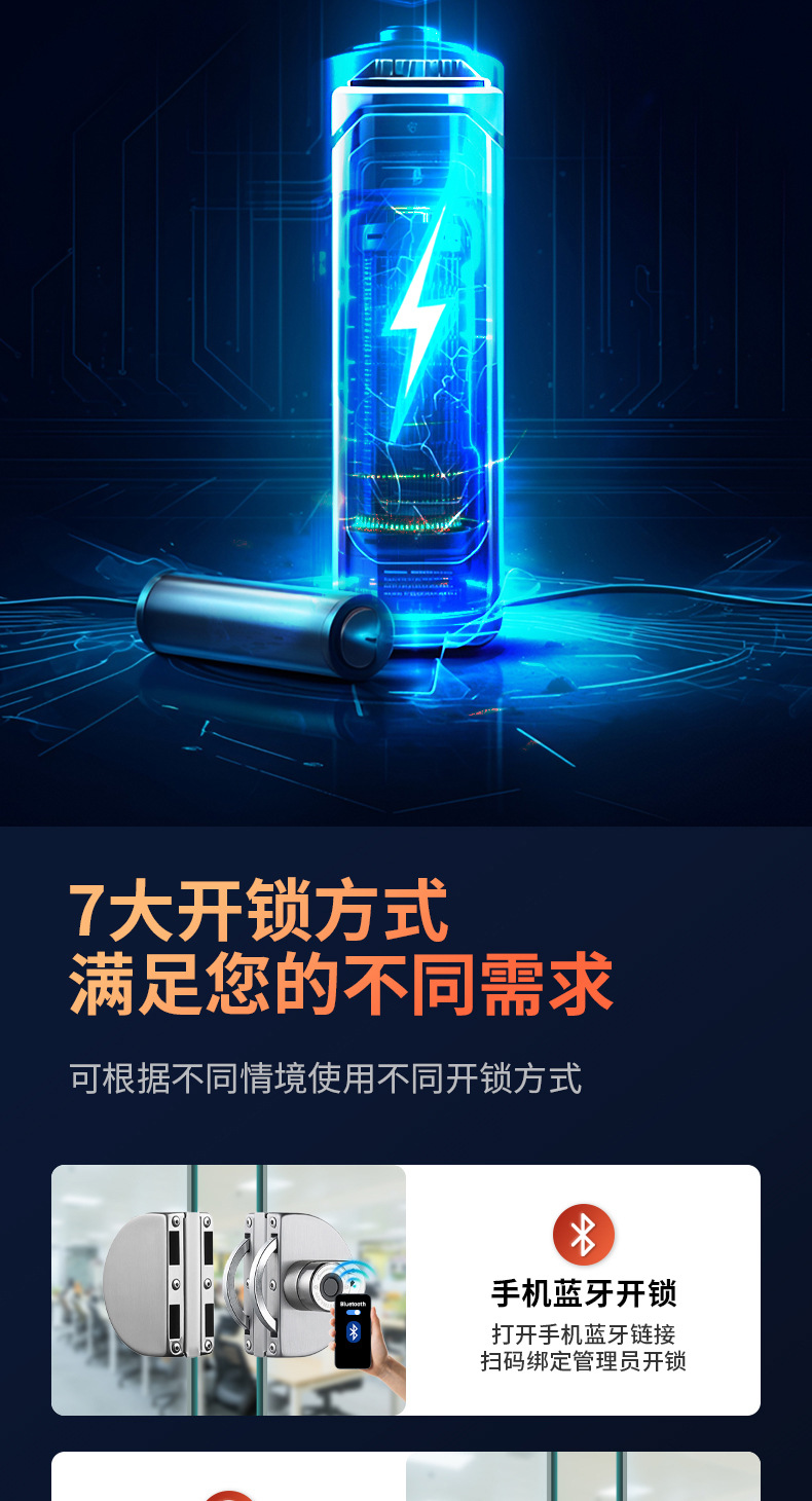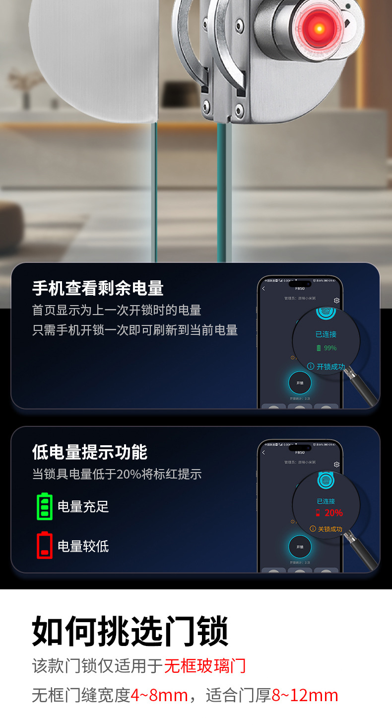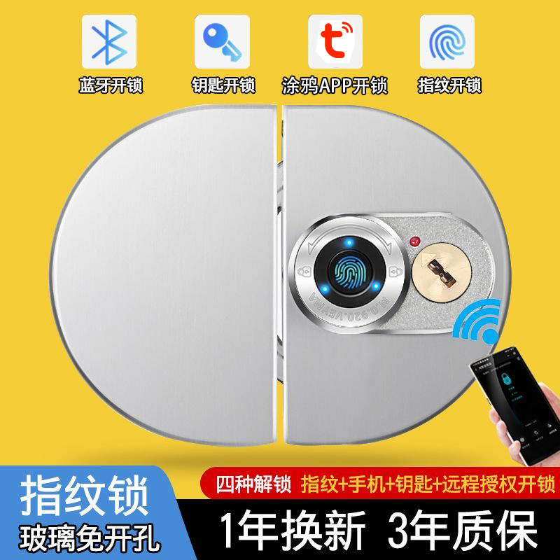 ガラスドア指紋ロック穴なしオフィスシングルダブルドア電子bluetoothガラスロックインテリジェントロック卸売り