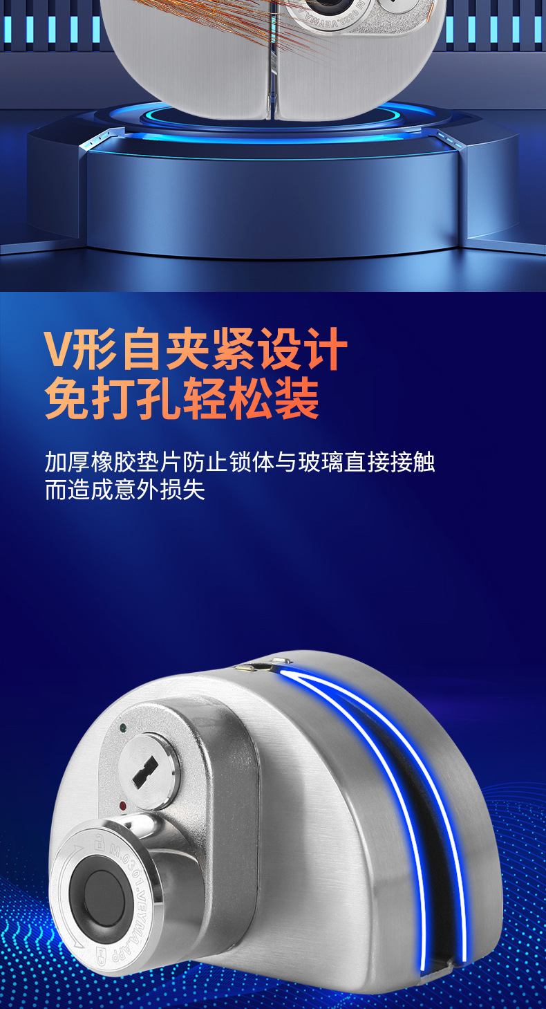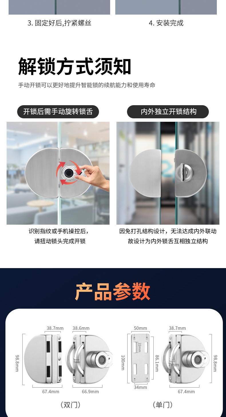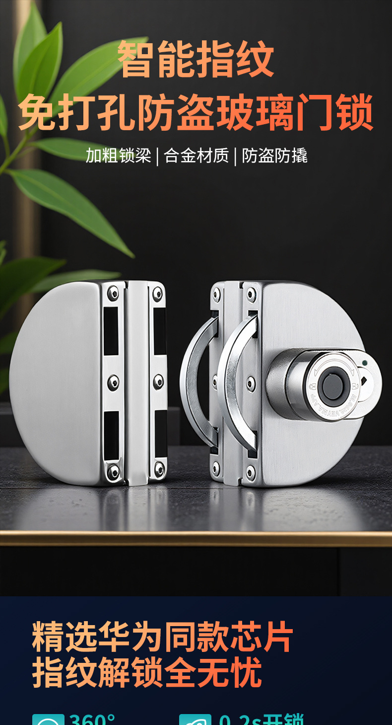 玻璃门指纹锁免开孔有框无框单双门办公室密码锁电子智能锁门禁锁