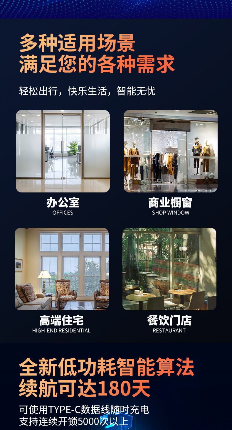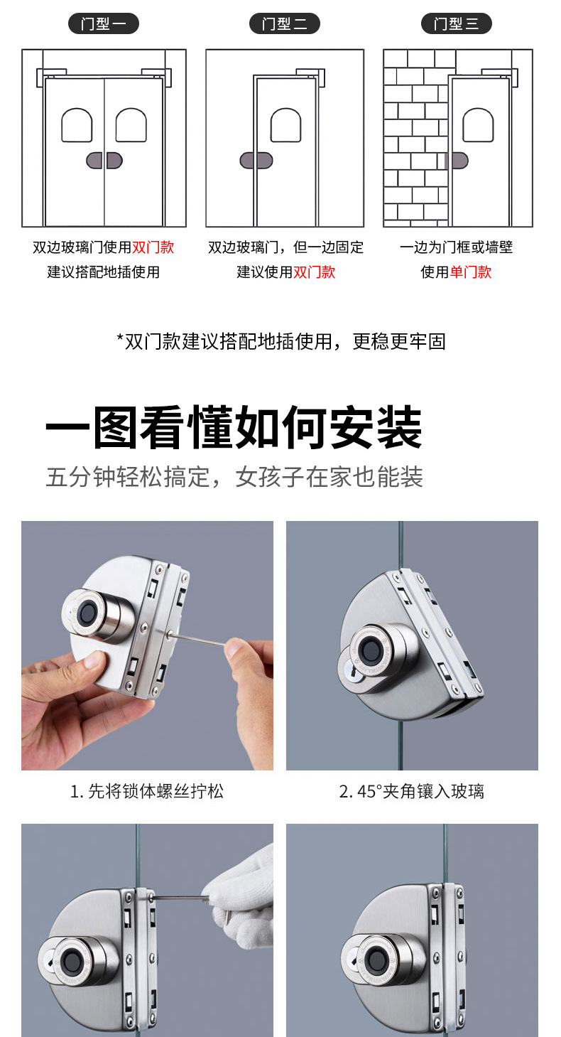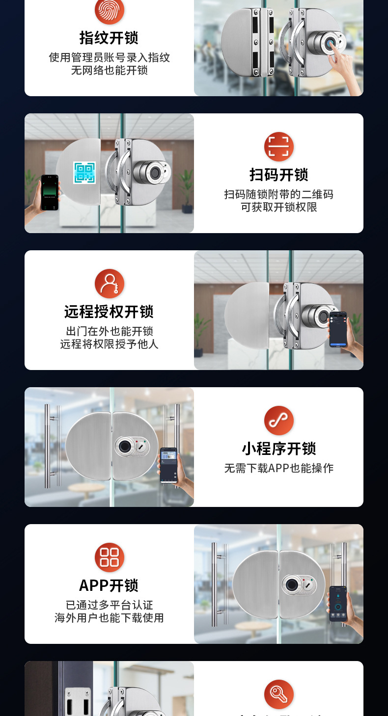 玻璃门指纹锁免开孔有框无框单双门办公室密码锁电子智能锁门禁锁