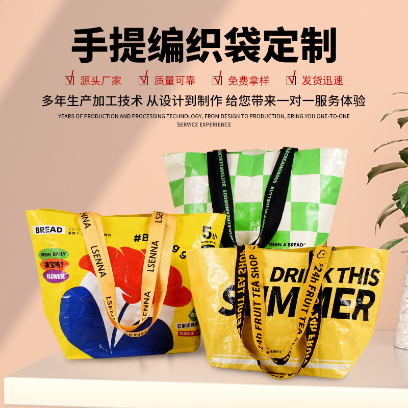 編み物袋カスタム防水膜広告宣伝手提げレジ袋環境保護大容量pp編み物袋カスタム