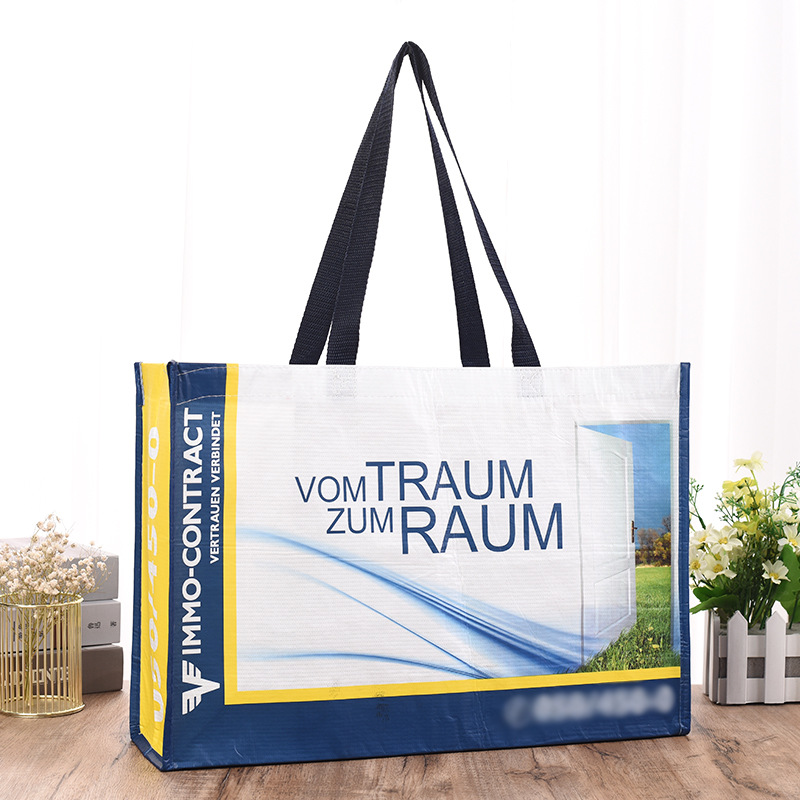 持ち運び可能な織りバッグ、カスタムロゴ、カラー印刷、ラミネート加工、展示会広告ギフトバッグ、環境に優しい織りバッグ、目立つバッグのカスタム