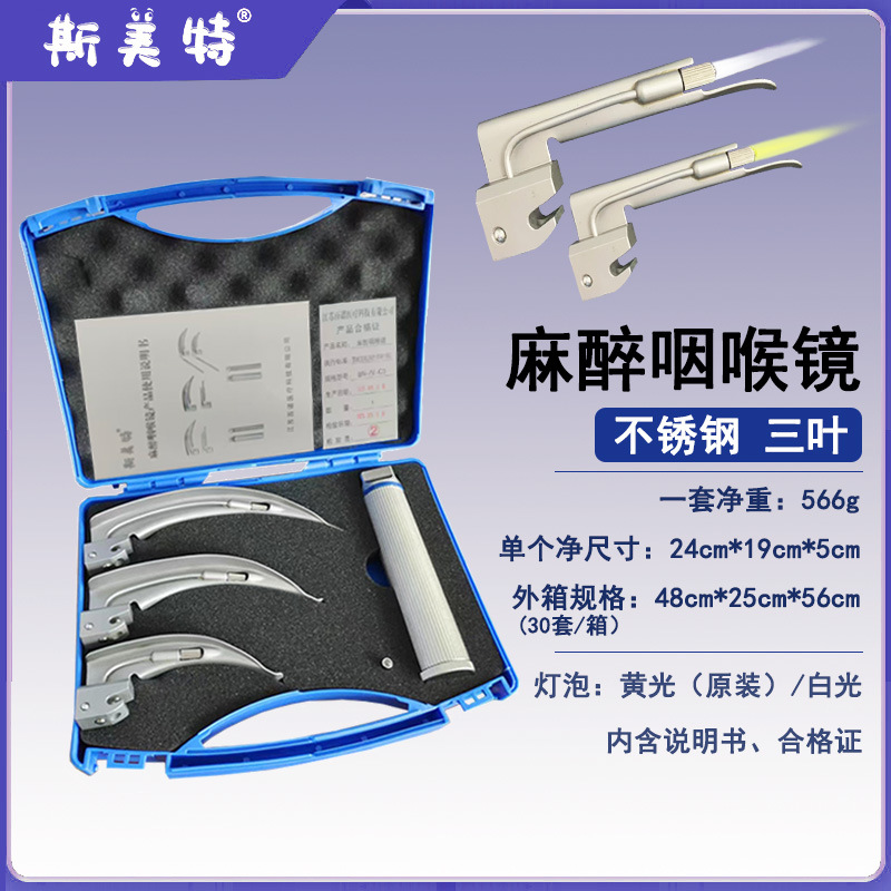 斯美特麻醉咽喉镜(不锈钢)成人型 儿童型 套装