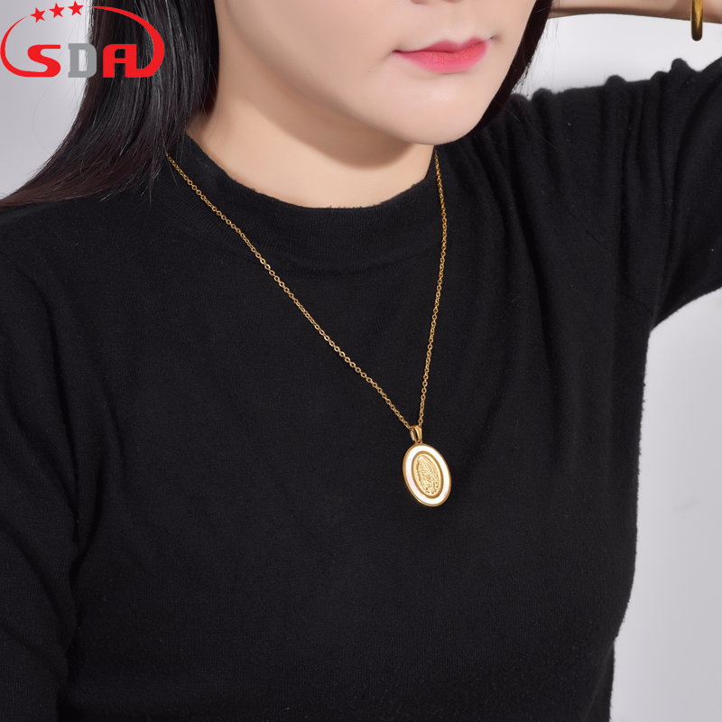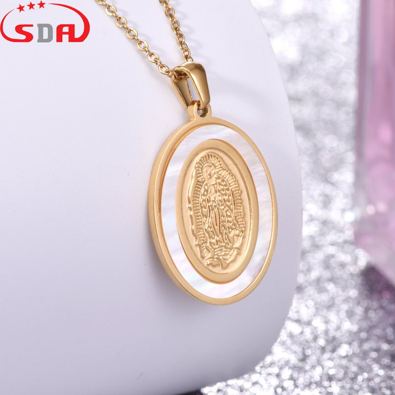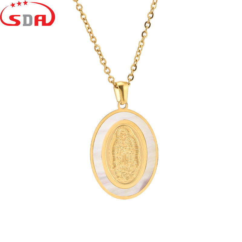 Sda街頭ヒップホップ潮牌金色メッキステンレスマリアモザイク貝殻ペンダント生中継ソース