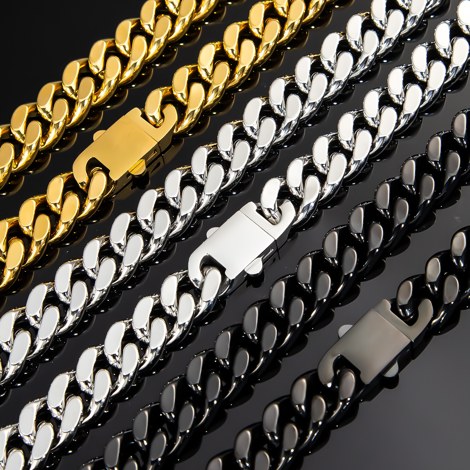 欧米のファッションのヒップホップの男性のスキューバチェーン10mm 12mm 14mmの幅のブレスレットのネックレスの金色の黒色の現物