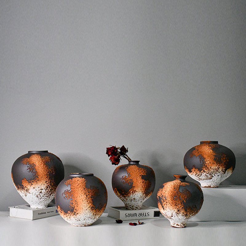 レトロ寂風経典陶芸花瓶高級会民宿玄関背景生け花水培手作り創意
