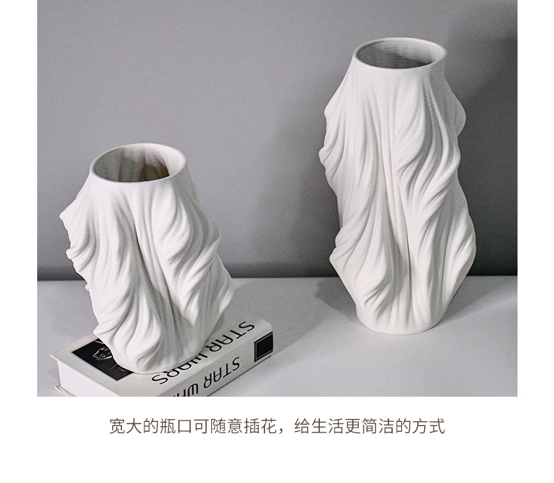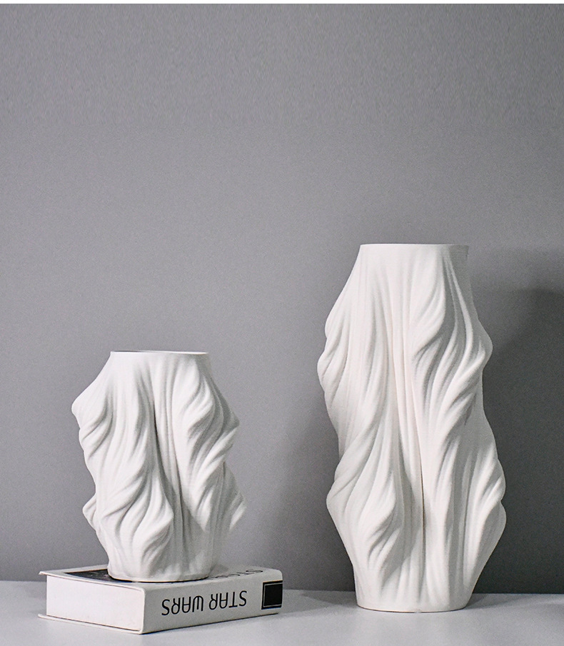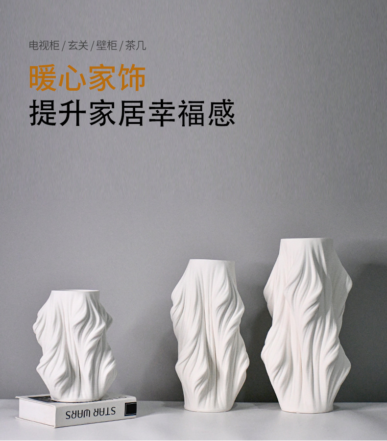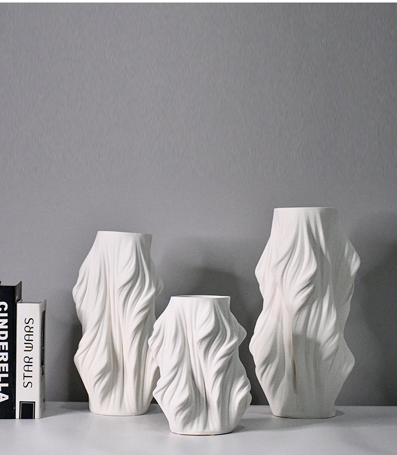 现代简约白色花瓶摆件北欧家居3D打印陶瓷工艺品跨境高级感装饰品