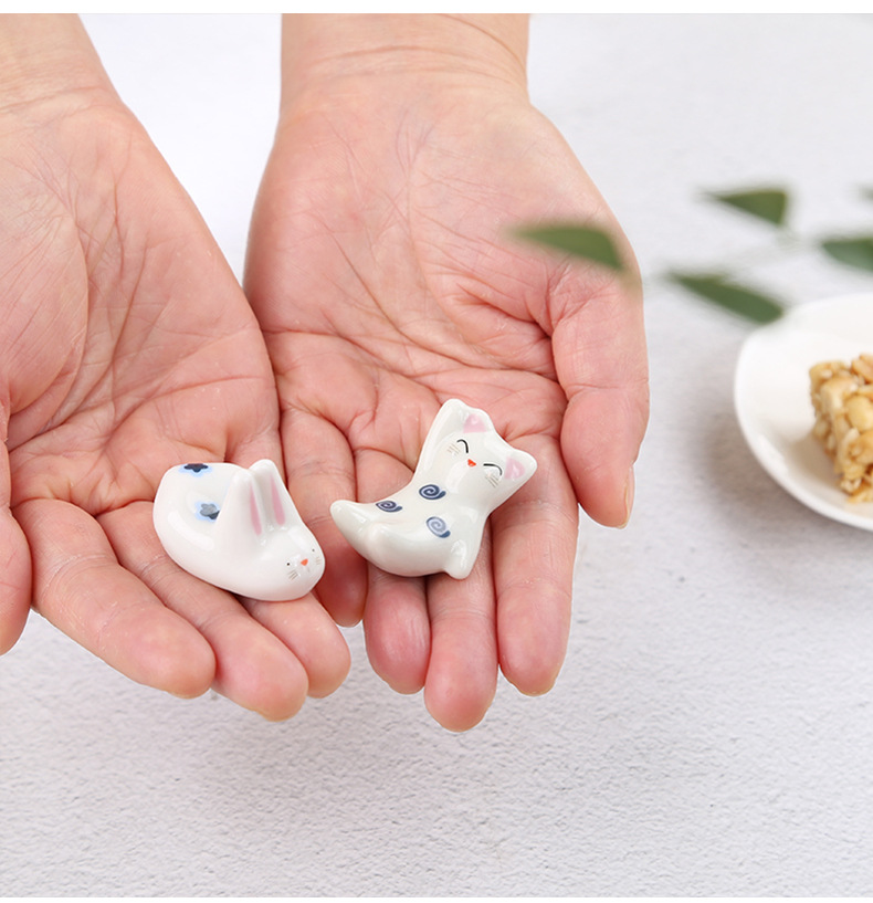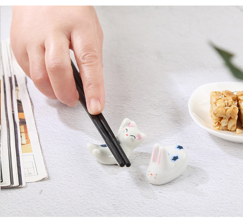日本式の漫画の子猫の陶磁器の箸の棚の日本料理の食卓は台のかわいいウサギの個性の箸を並べて箸の枕を支えます。
