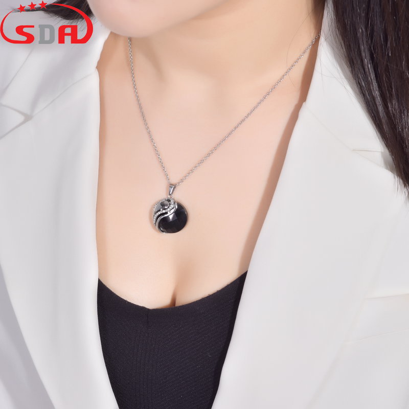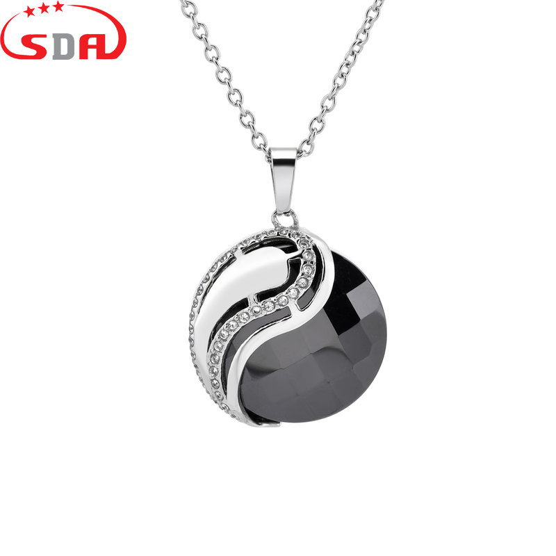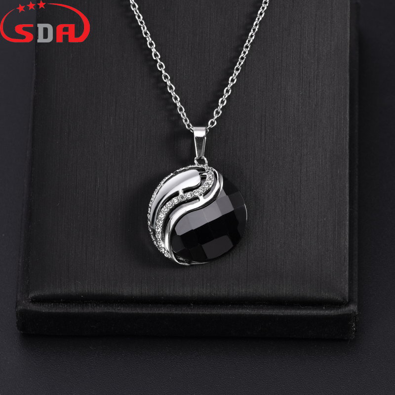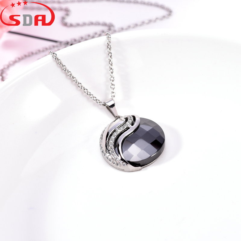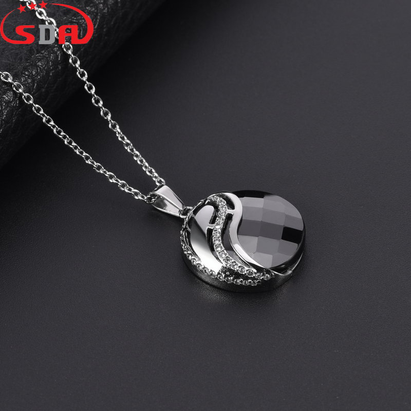 Sda女子アクセサリー韓国版ダイヤモンド円形ネックレスペンダントステンレスセラミックtシャツセーターネックレス